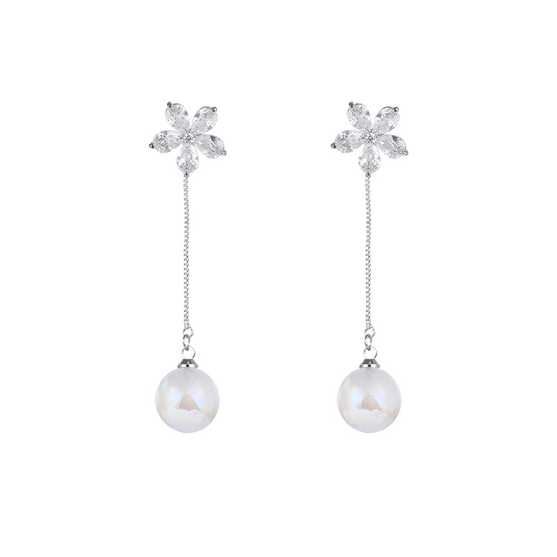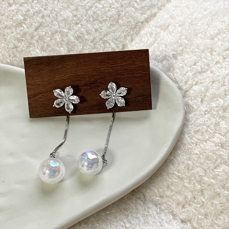 气质精致高级感锆石花朵珍珠耳环小众轻奢流苏耳坠年新款耳饰