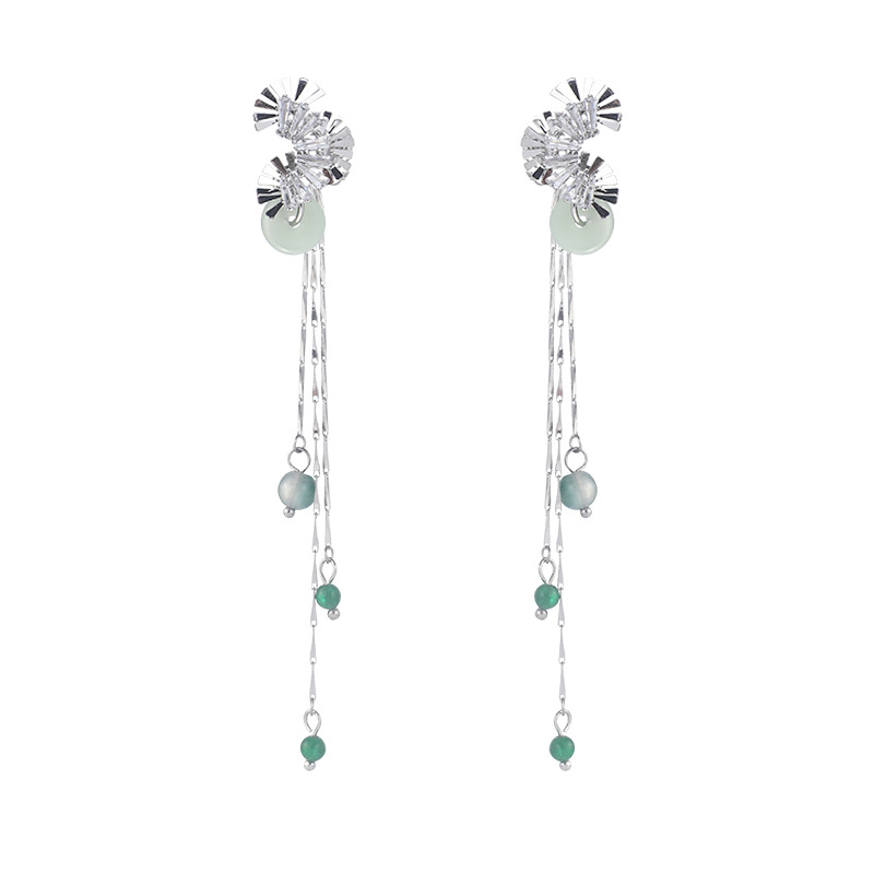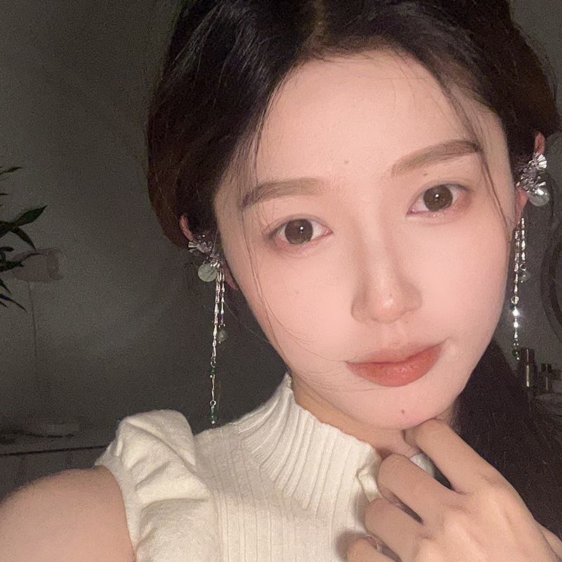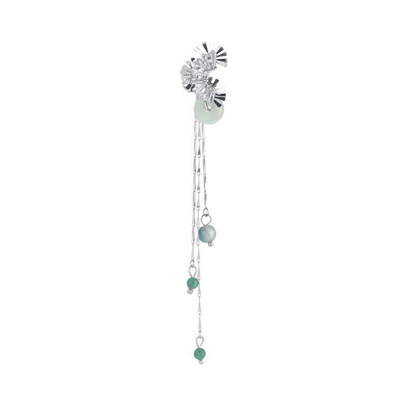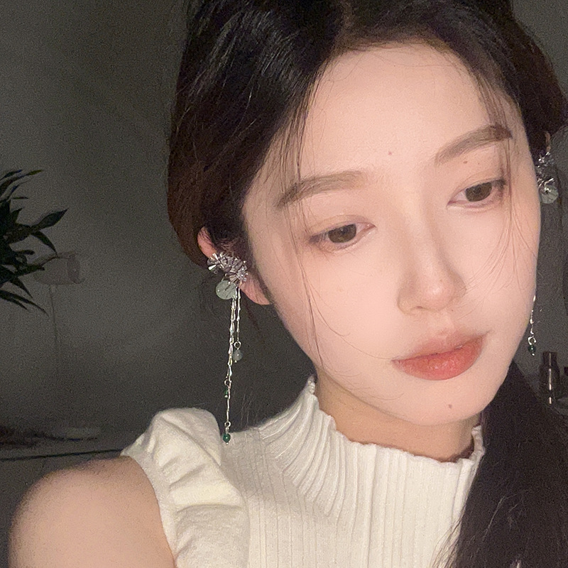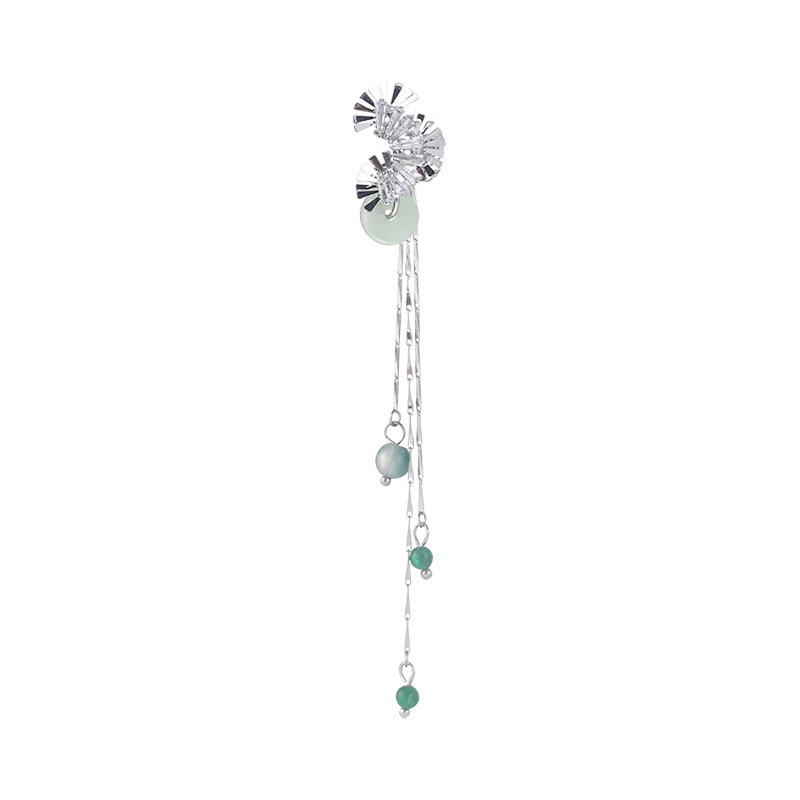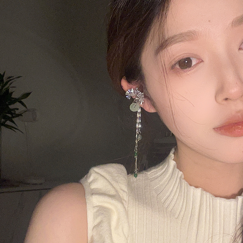 新中式扇形平安扣流苏耳夹女气质清冷感国风长款流苏耳骨夹耳饰潮