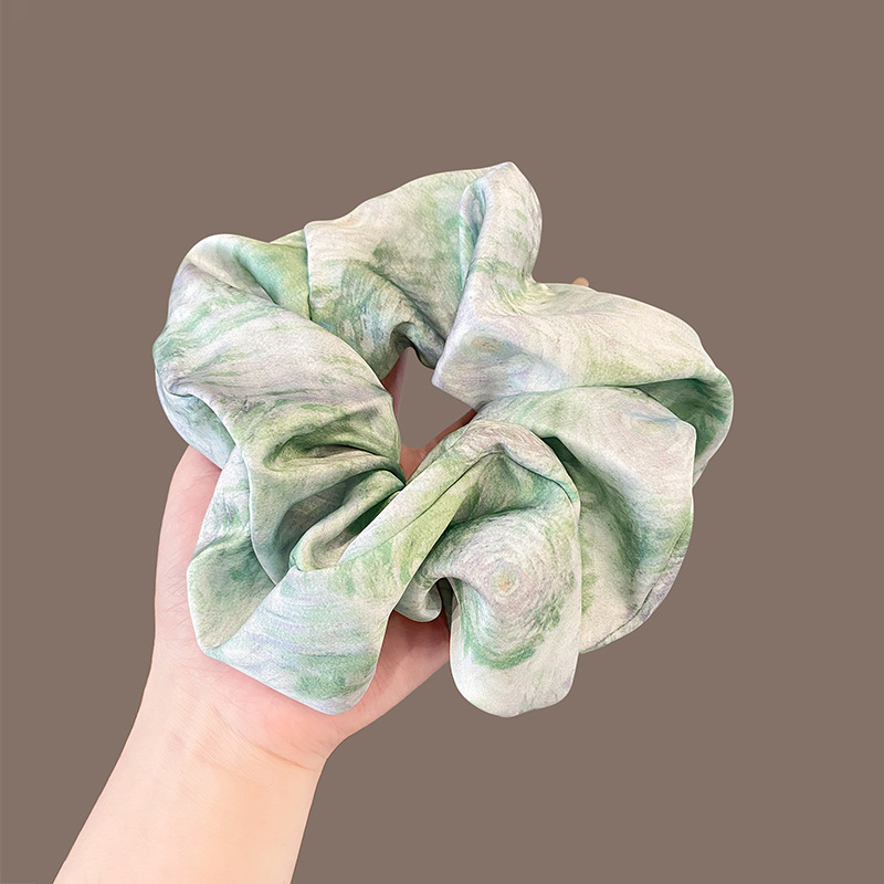 韩系缎面蓬松感水墨油画扎染大肠发圈高级感后脑勺气质扎头绳发饰