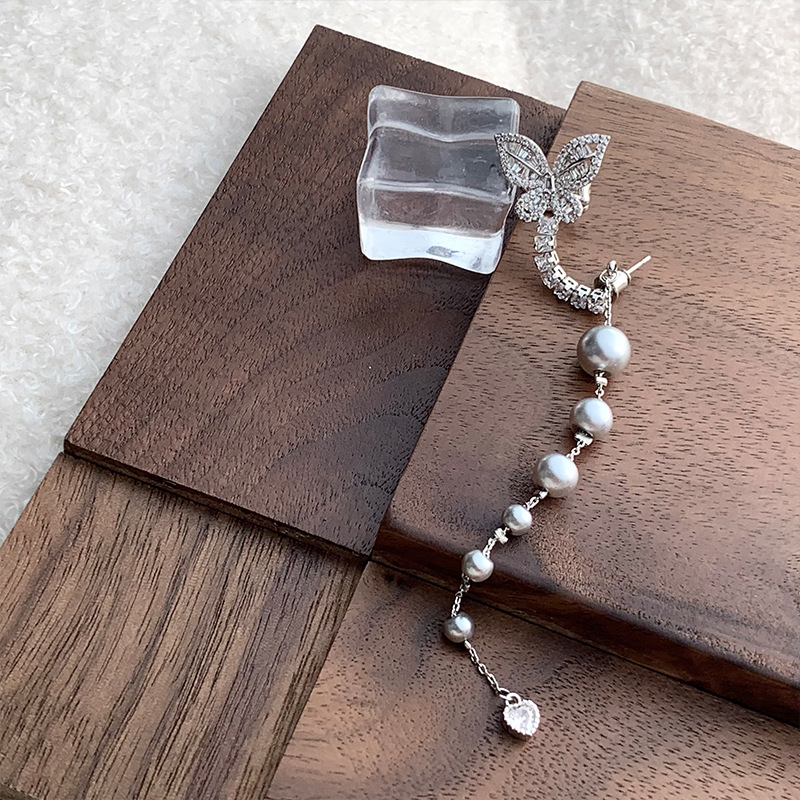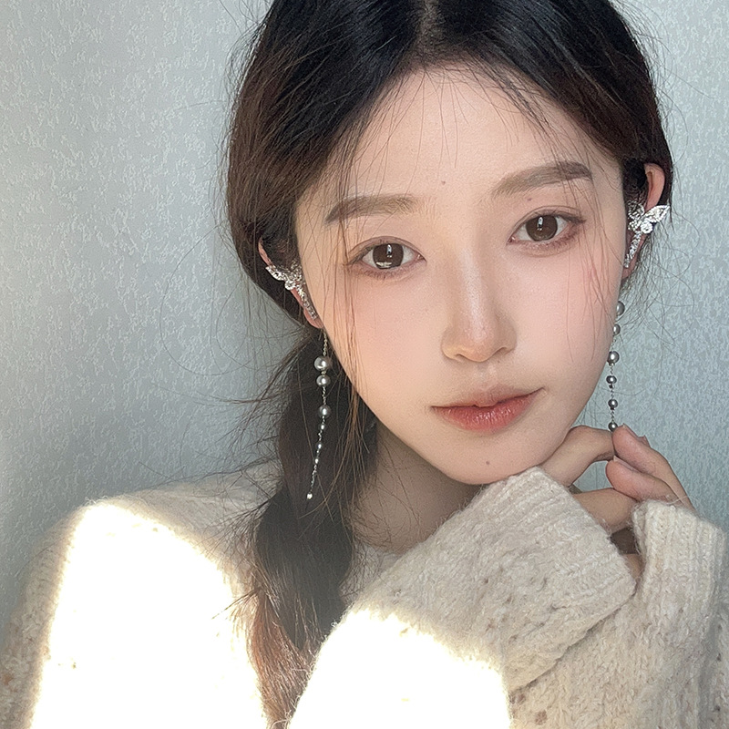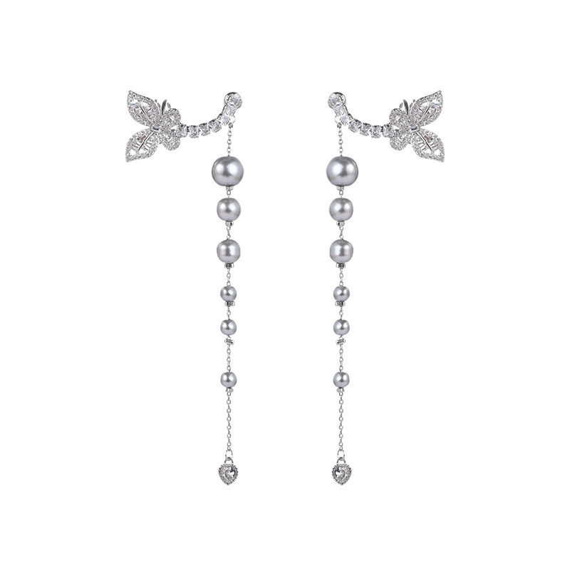 轻奢高级感微镶锆石蝴蝶珍珠长流苏耳环年新款气质优雅耳饰女
