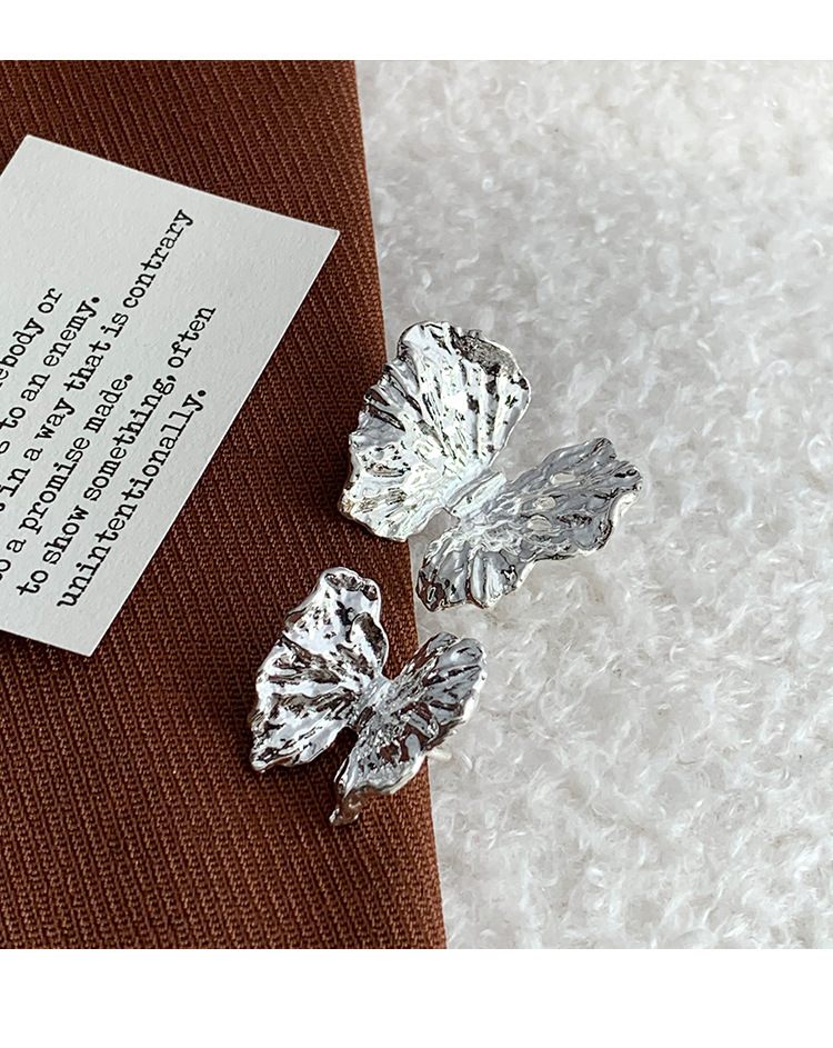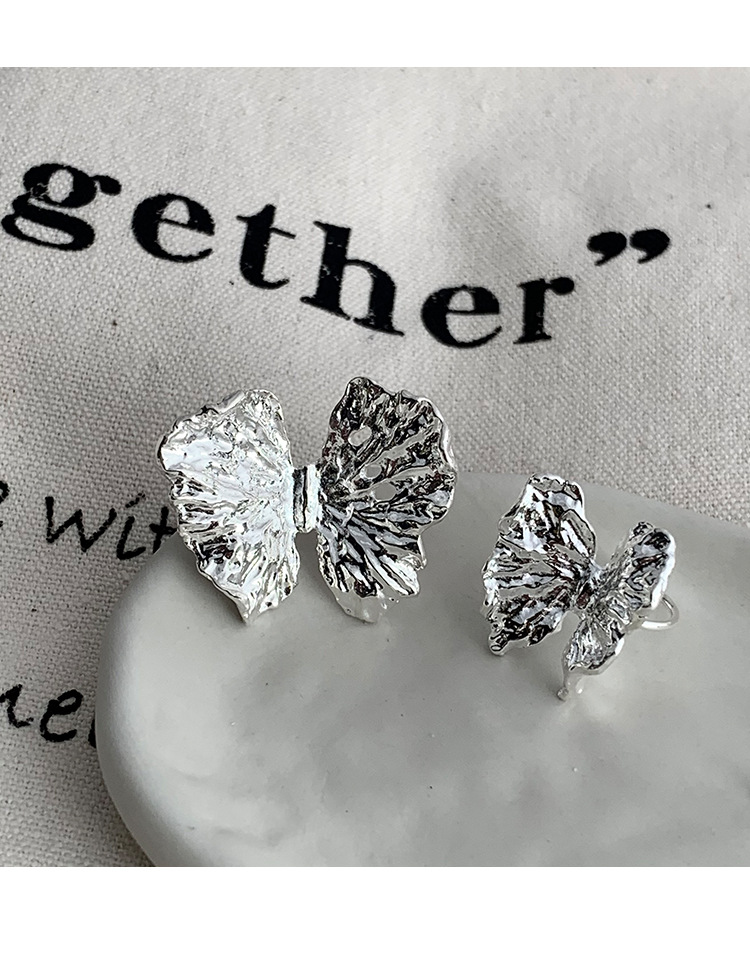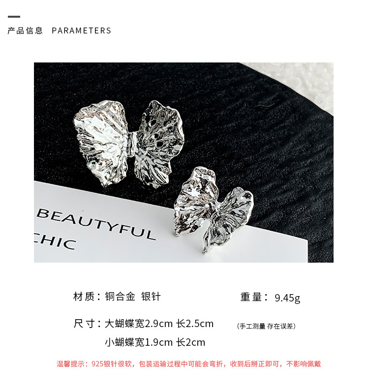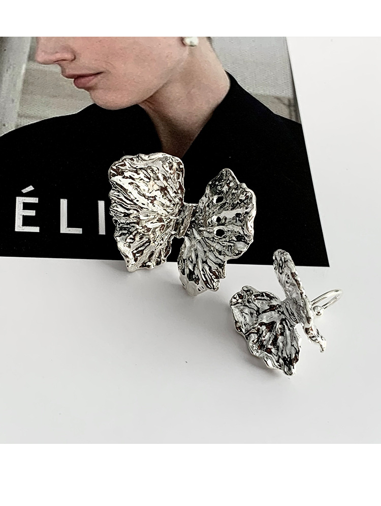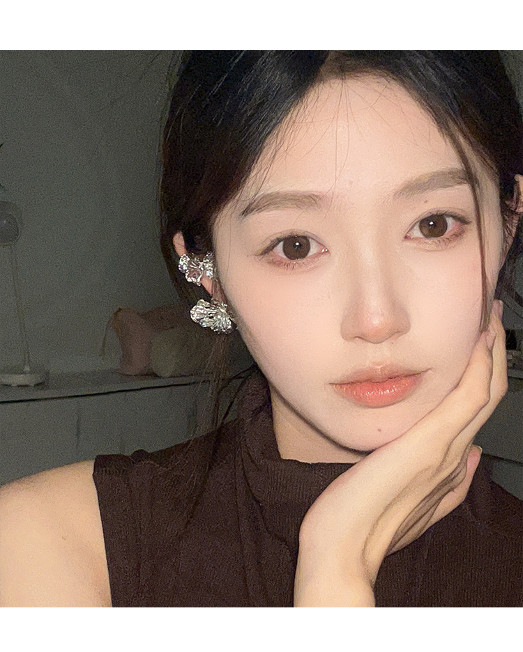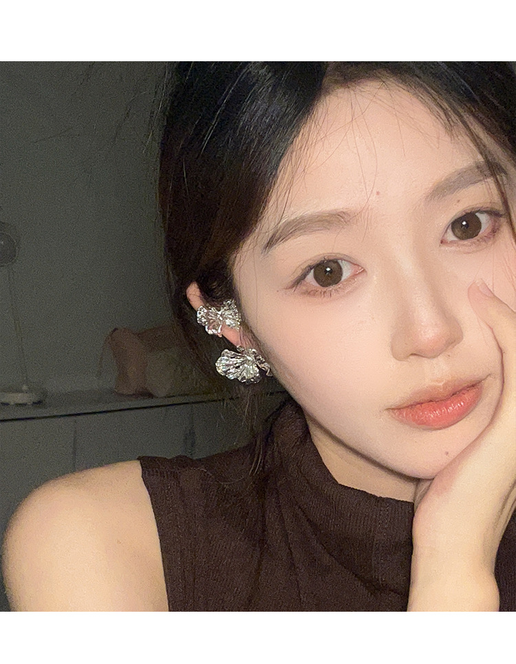 冷淡风银色立体肌理感蝴蝶耳钉耳夹ins小众高级感液态花朵耳饰潮
