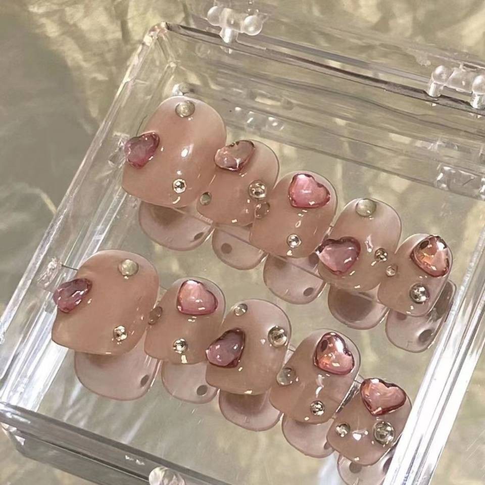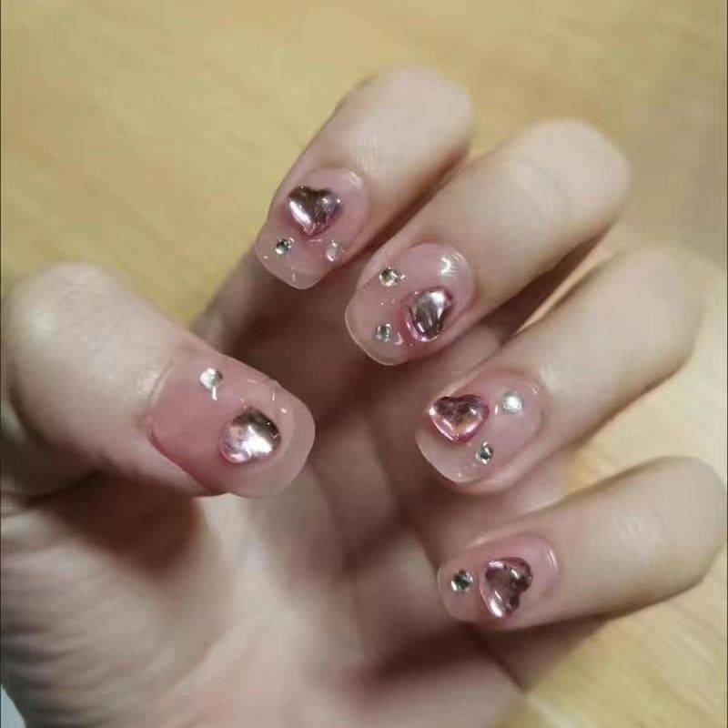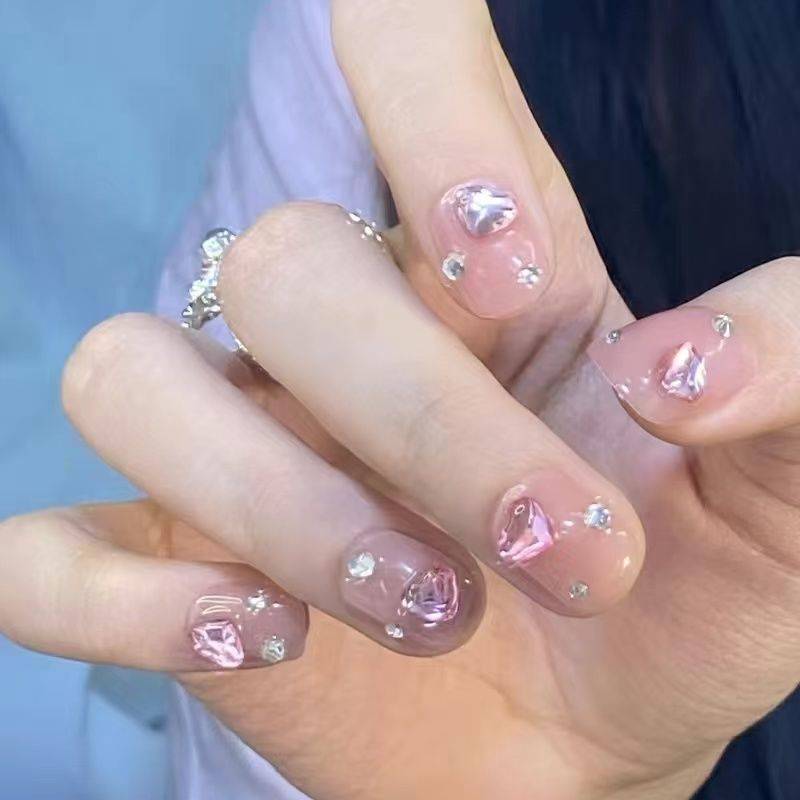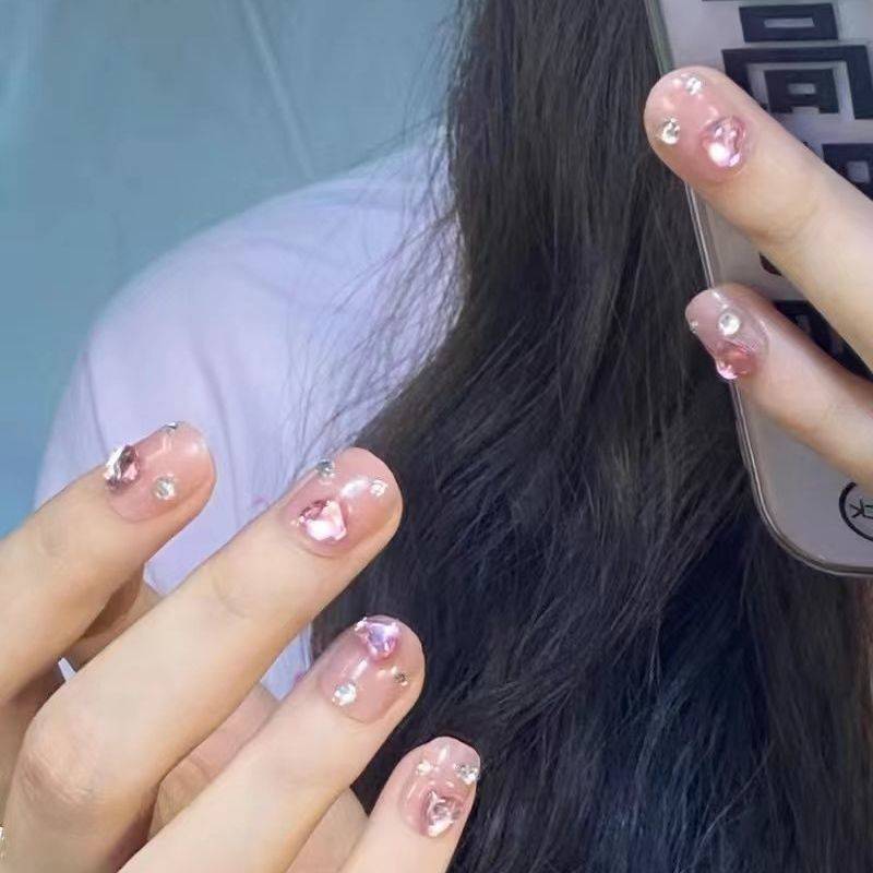 手工光疗穿戴甲 短款粉流星穿戴甲批发成品重复使用美甲贴片