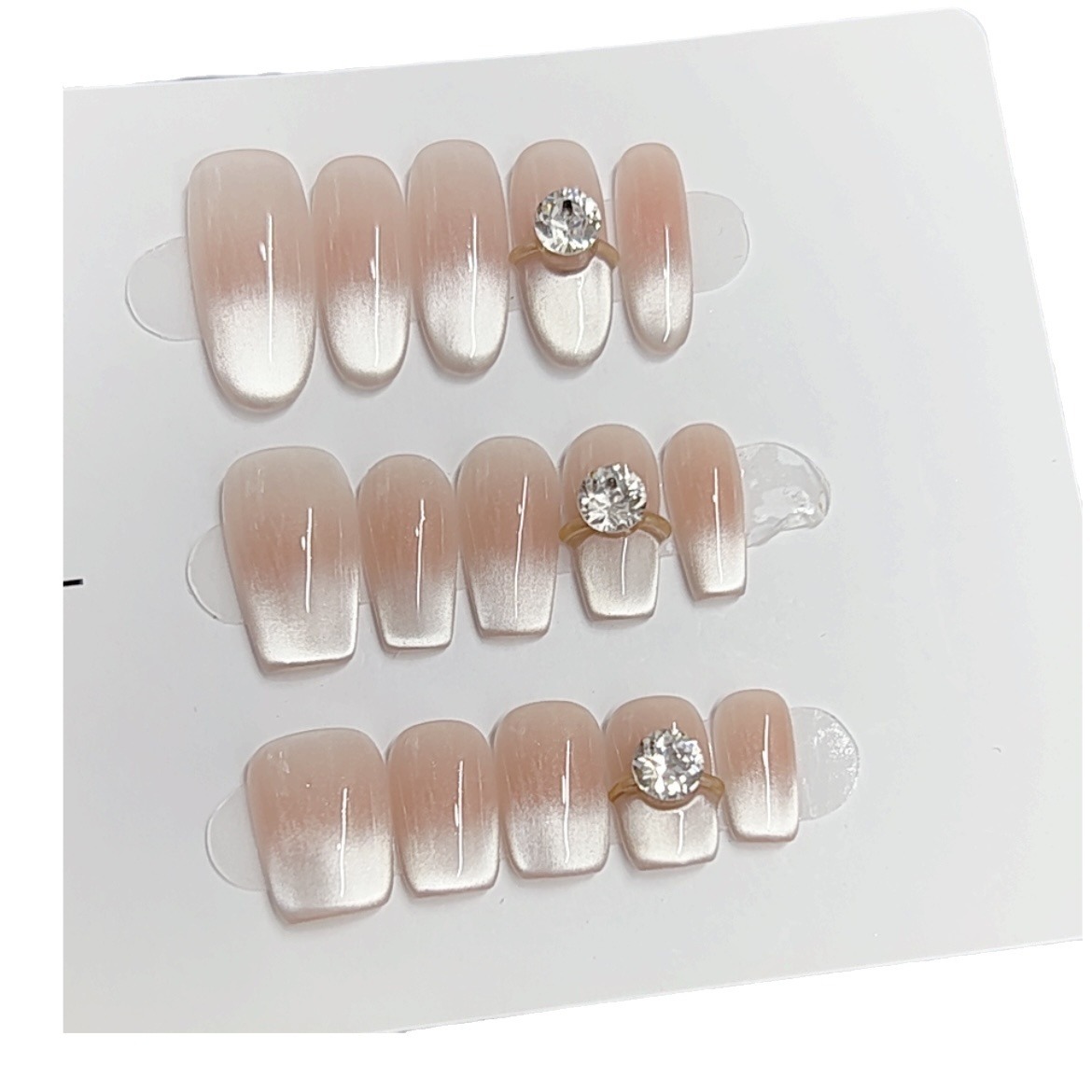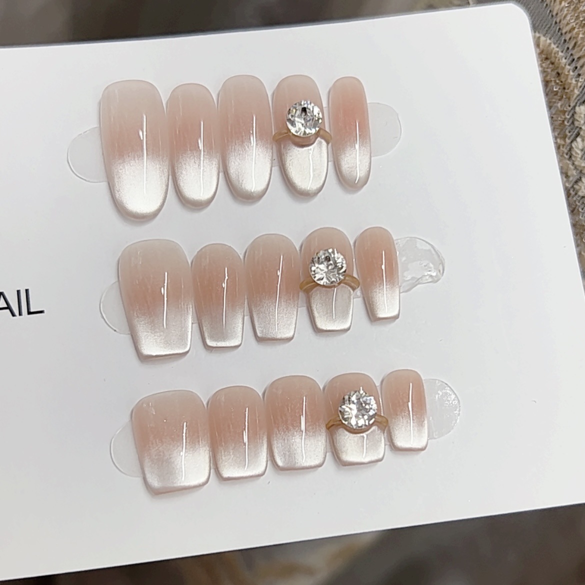 奈姿纯手工光疗穿戴甲猫眼落日婚礼批发成品使用美甲贴片可拆卸