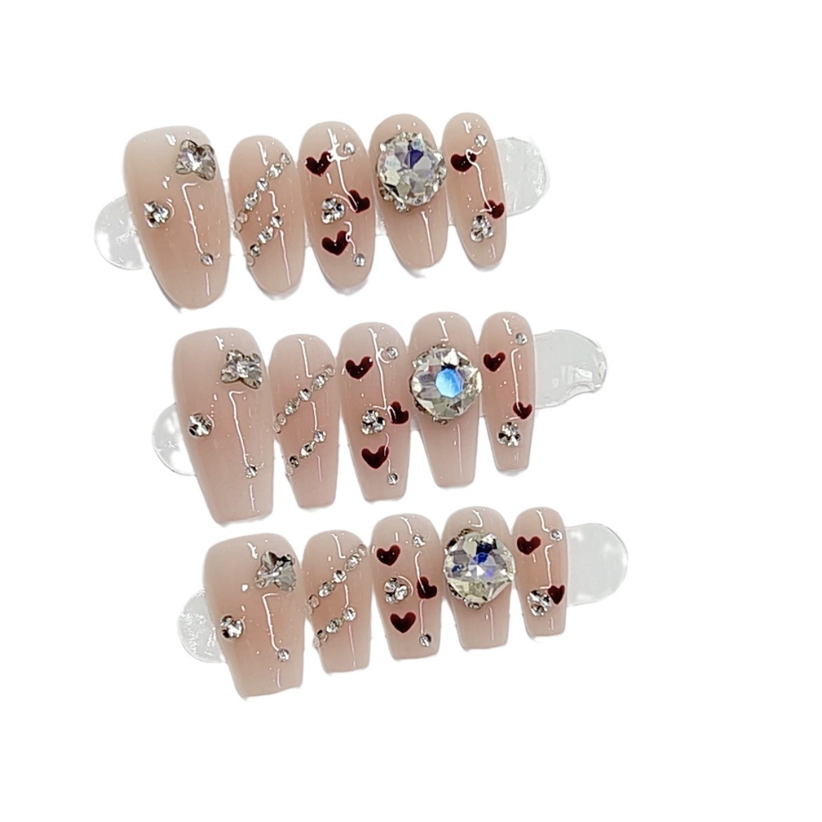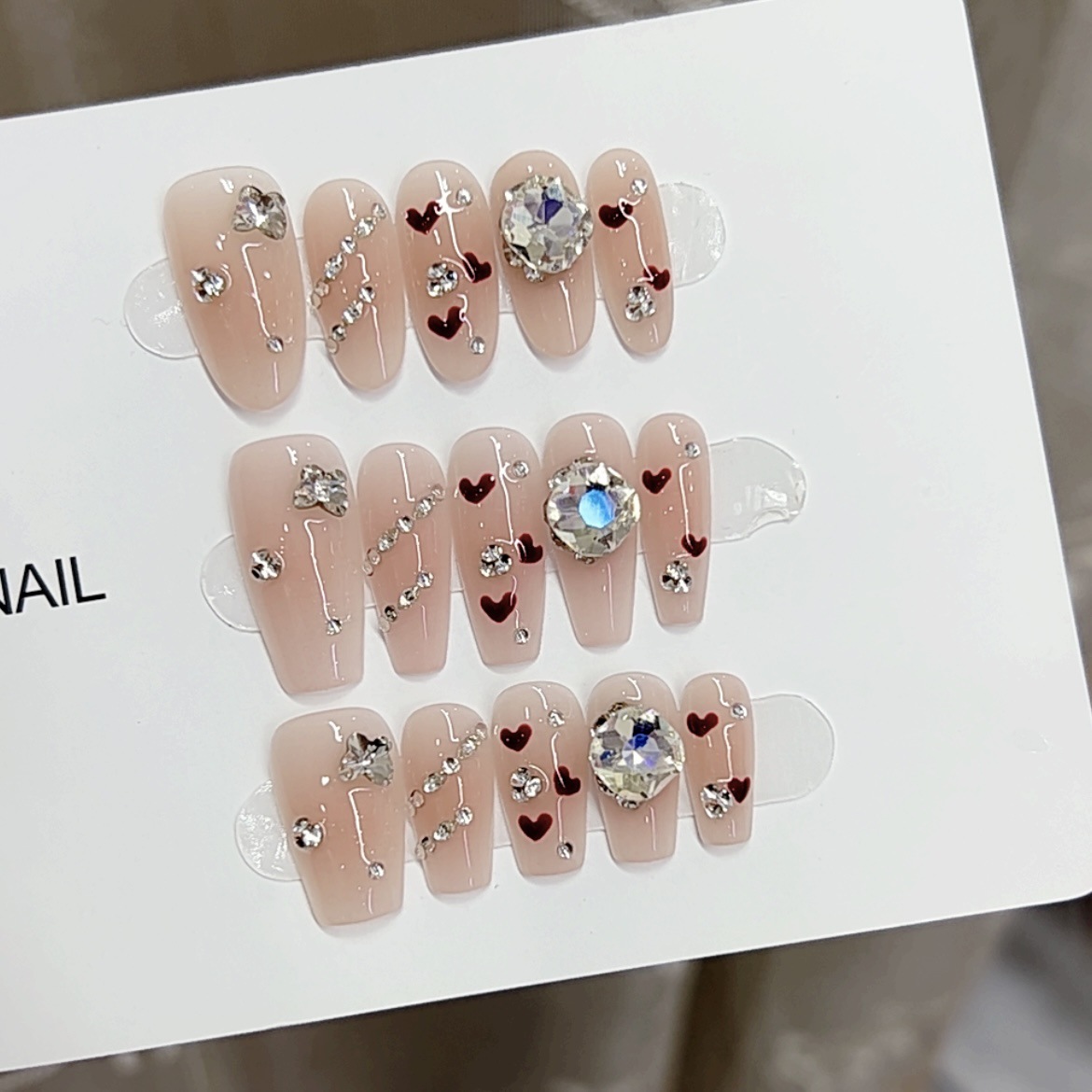奈姿纯手工光疗穿戴甲腮红心动讯息批发成品重复使用美甲贴片