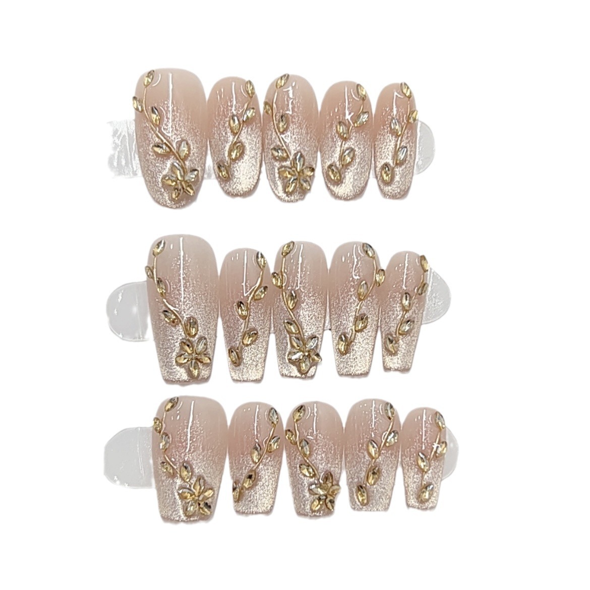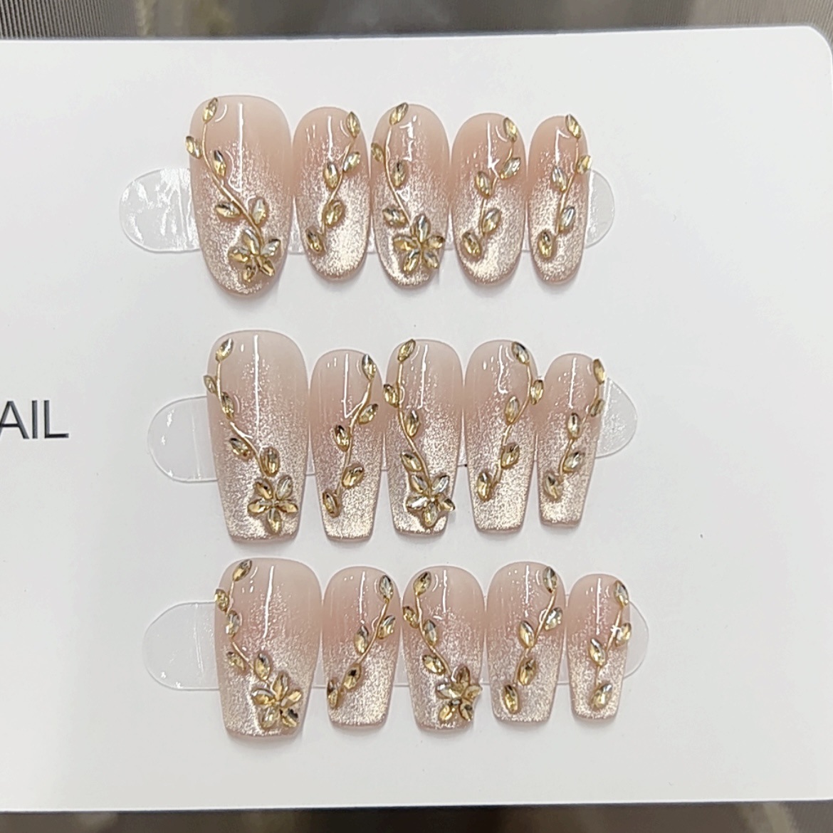 纯手工猫眼穿戴甲金色K9钻高级满地尽带黄金甲美甲可拆卸重复使用