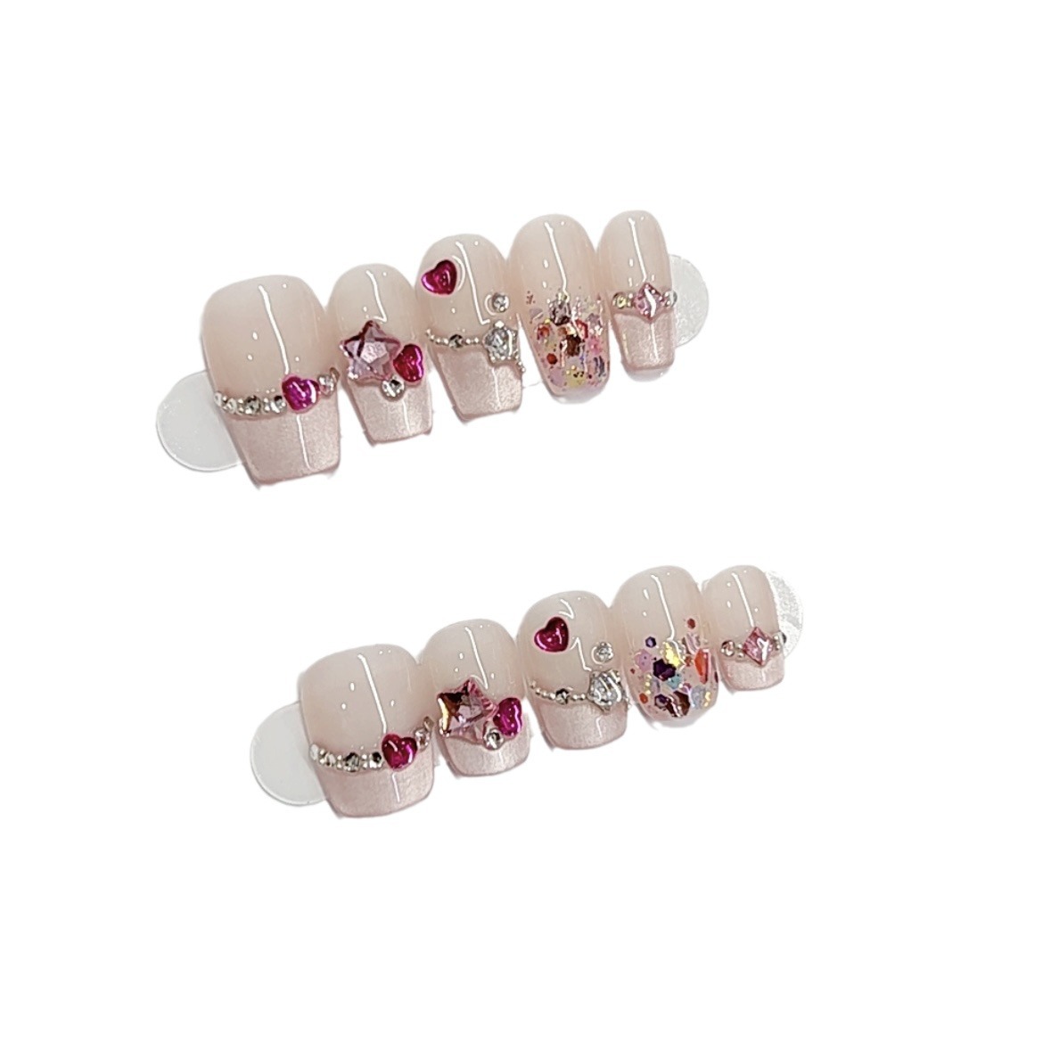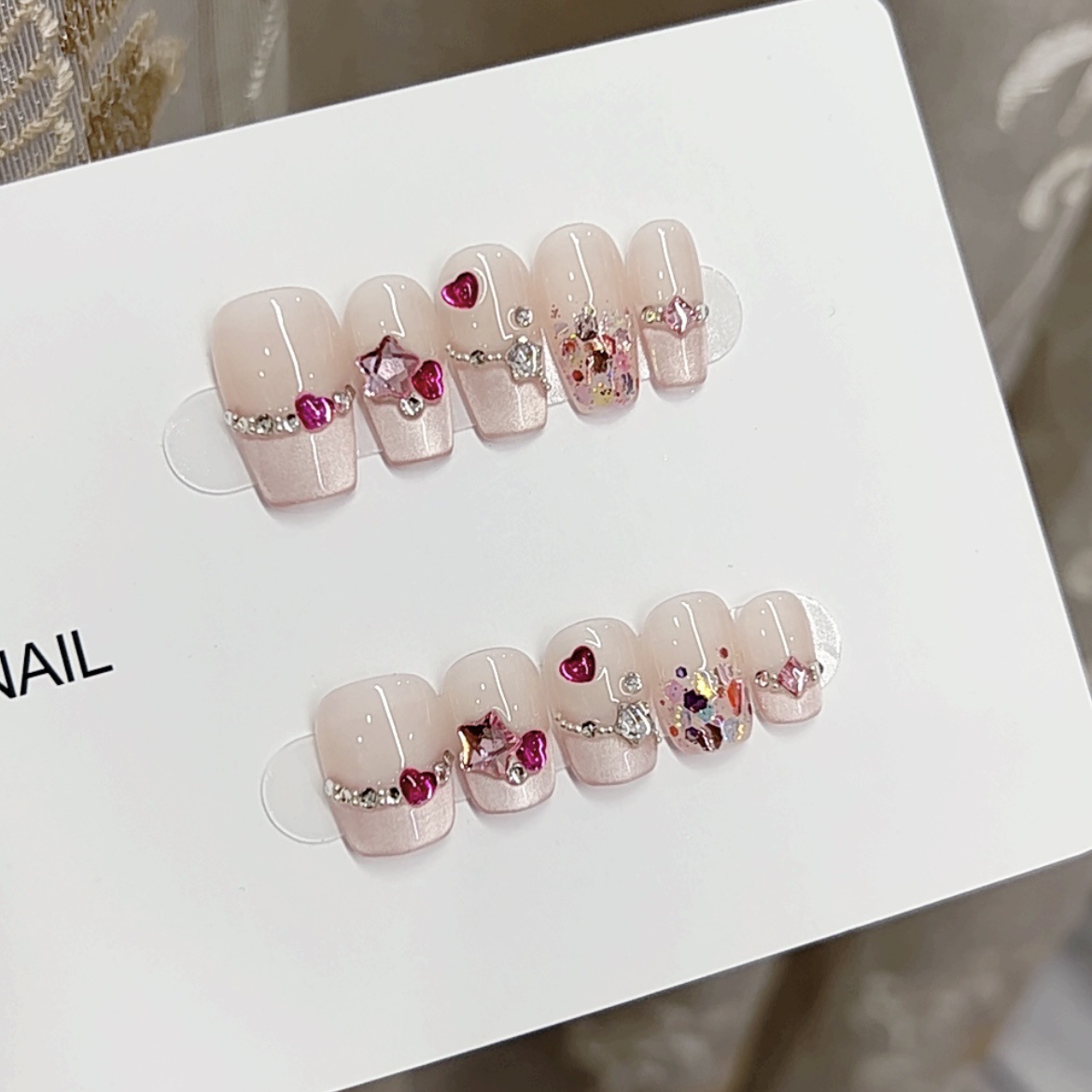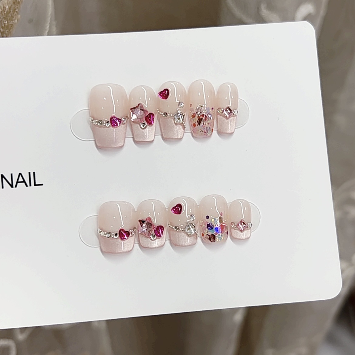 奈姿纯手工光疗穿戴甲猫眼爱心钻俏皮小姐批发成品重复使用美甲