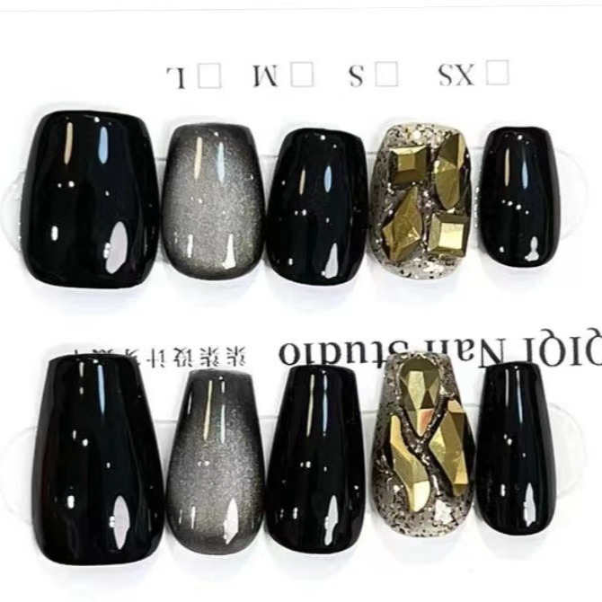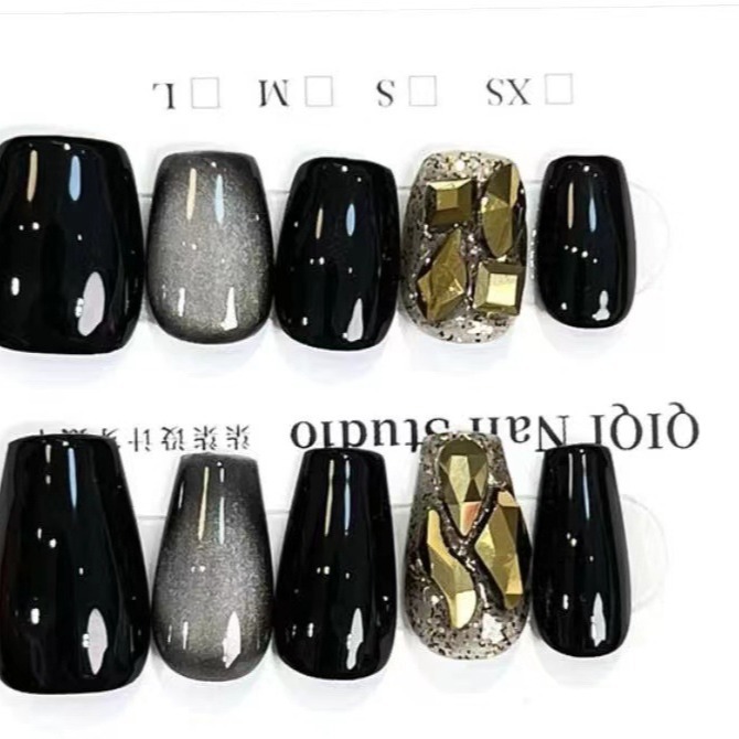纯手工光疗穿戴甲暗黑公主批发成品重复使用美甲贴片可拆卸