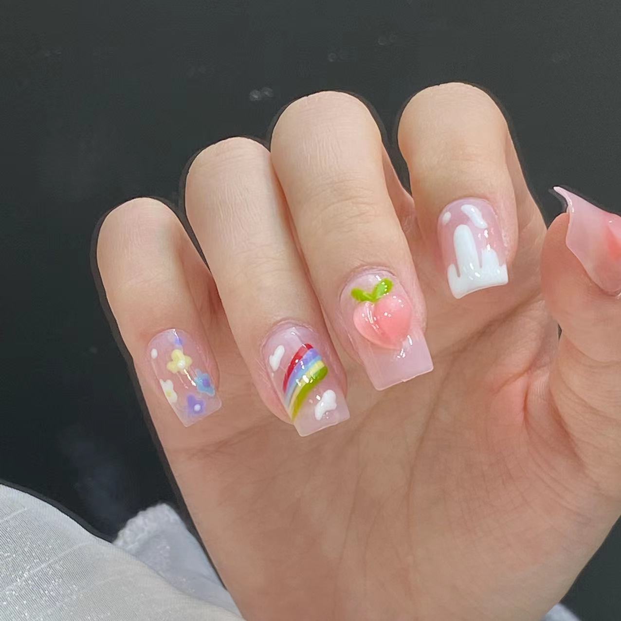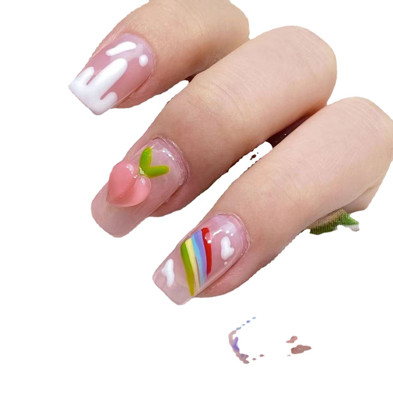 纯手工光疗穿戴甲彩虹水蜜桃穿戴甲批发成品重复使用美甲贴片