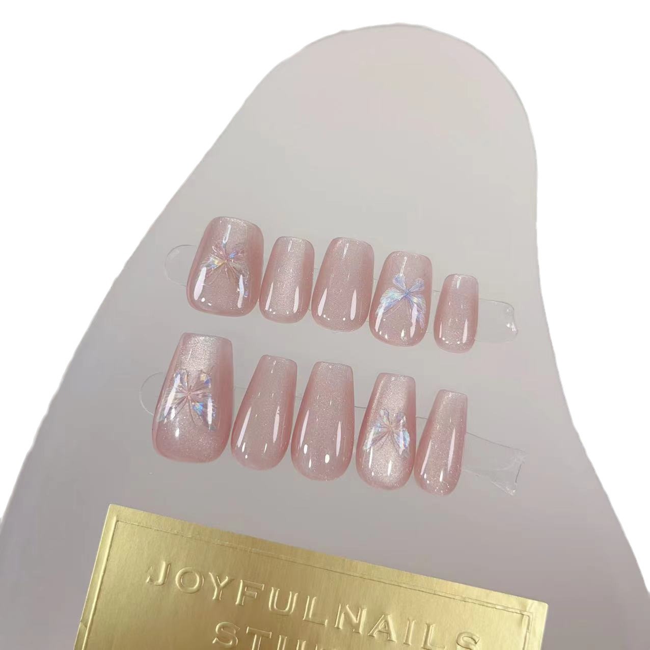 纯手工光疗穿戴甲蝴蝶之恋批发成品重复使用美甲贴片可拆卸