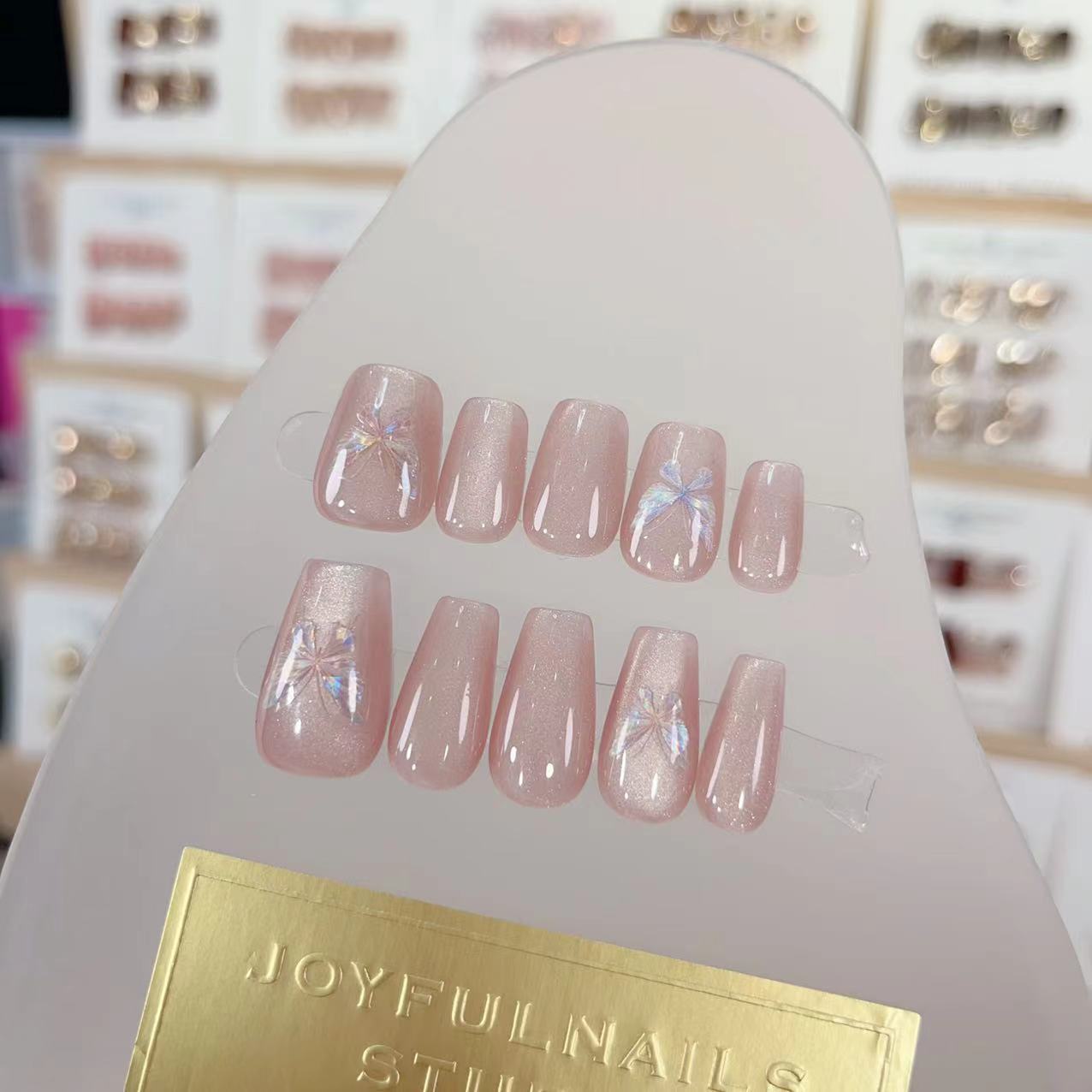 手工穿戴甲高级感爆闪猫眼法式冰透钻立体蝴蝶氛围感穿戴甲美甲贴
