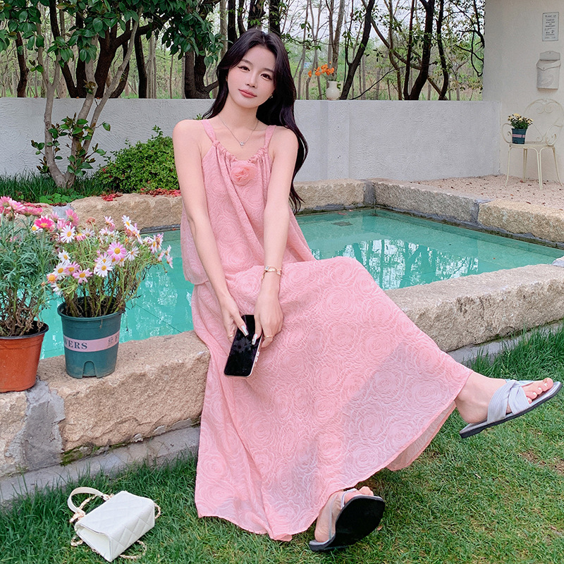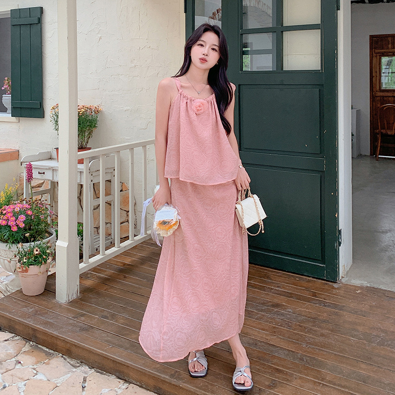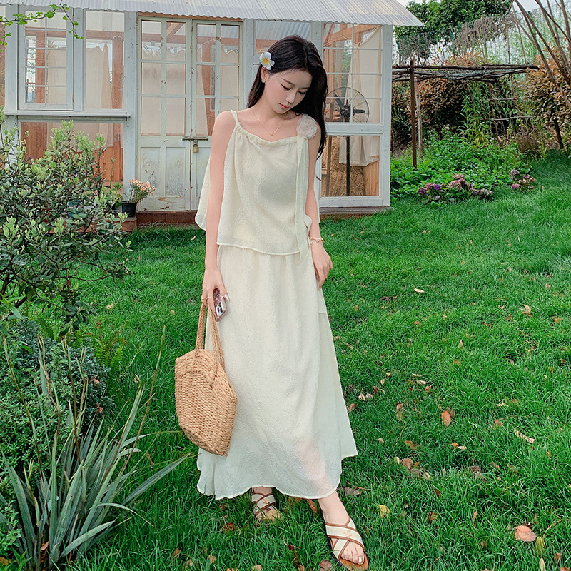 夏新款法式浪漫氛围感度假仙美两件套吊带上衣高腰双层半身裙套装