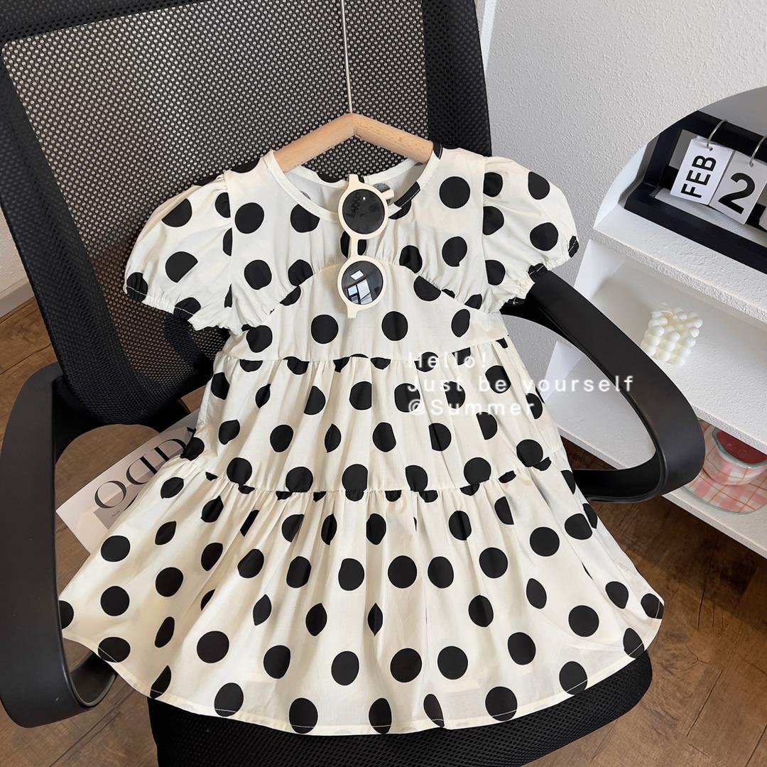 女童连衣裙2025夏装新款洋气儿童泡泡袖公主裙波点女孩裙子