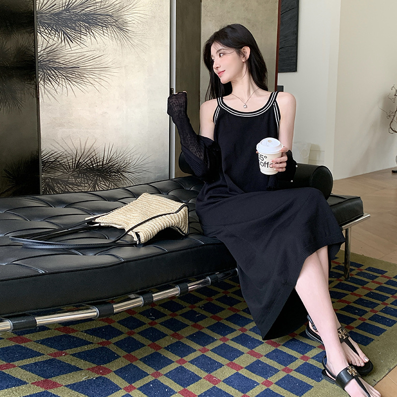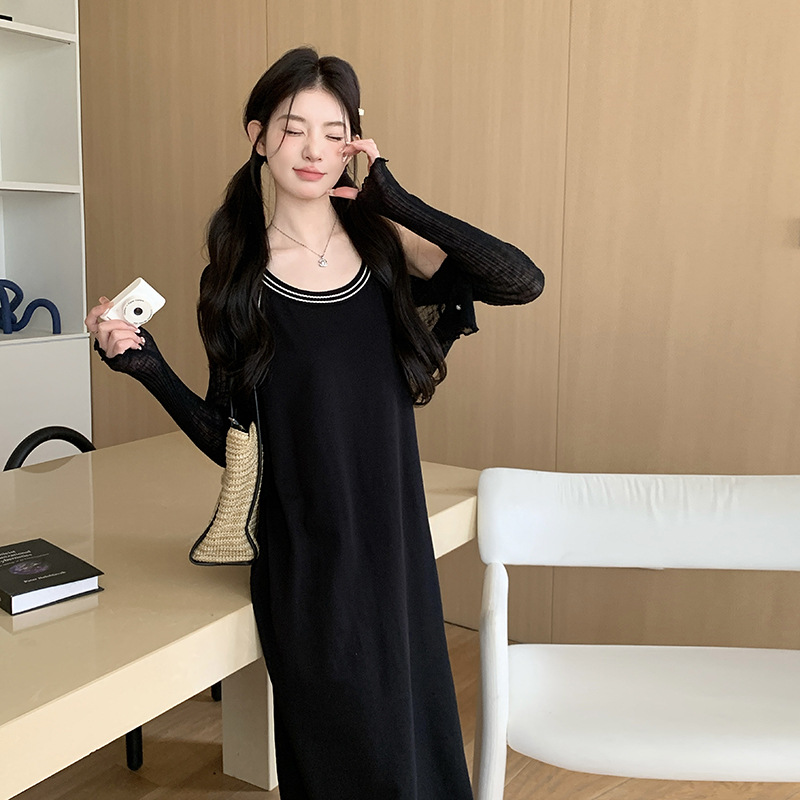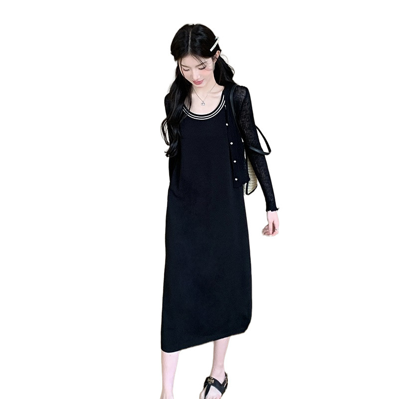 慵懒随性百搭气质冰丝针织套装裙高级感短款开衫背心连衣裙两件套