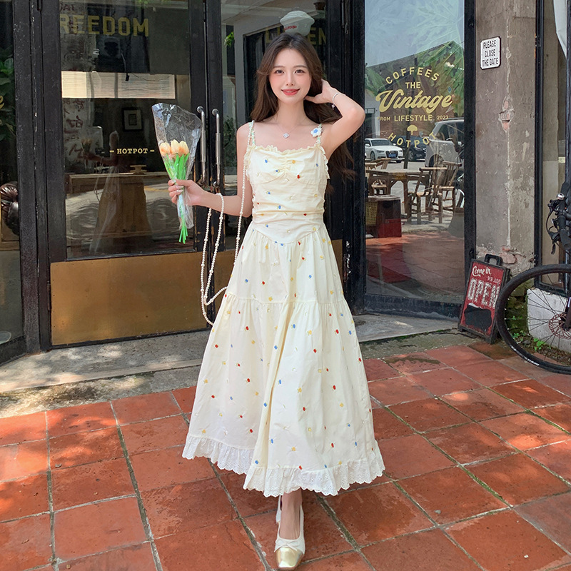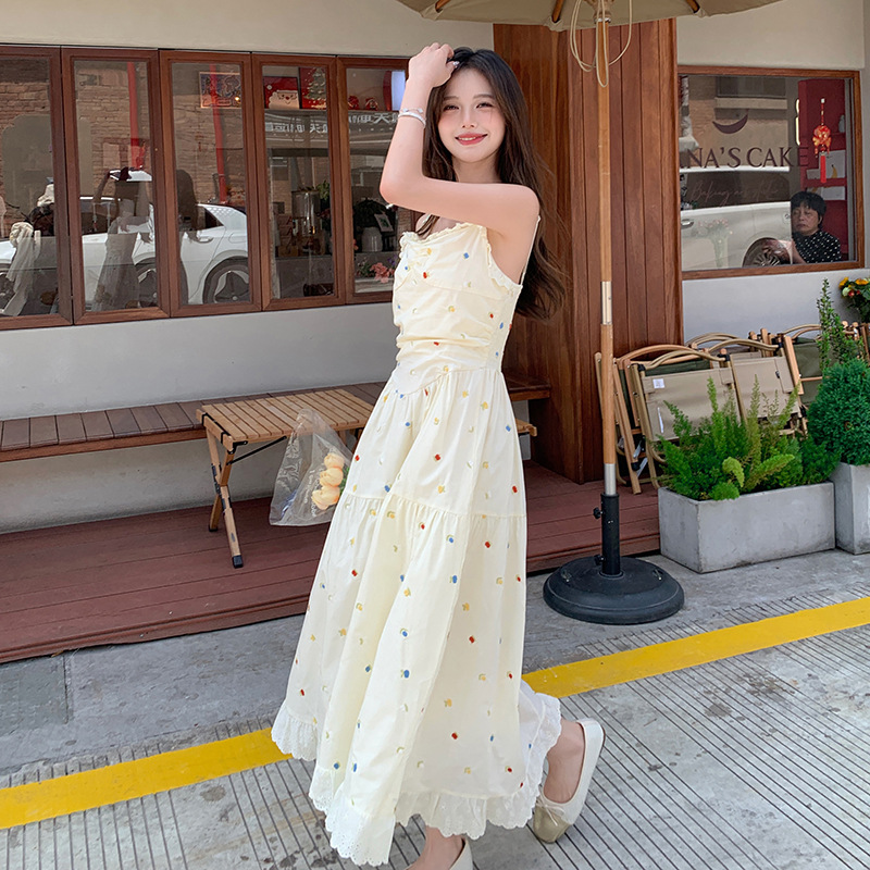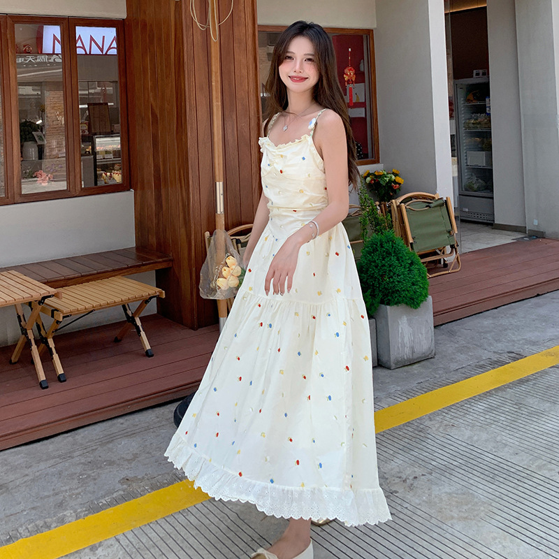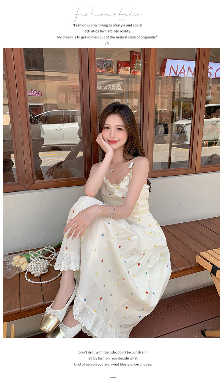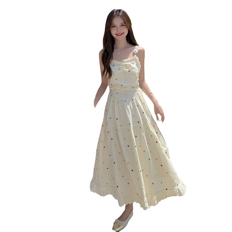 甜美氛围感可爱ins风仙女裙温柔度假刺绣绣花宽松拼接吊带连衣裙