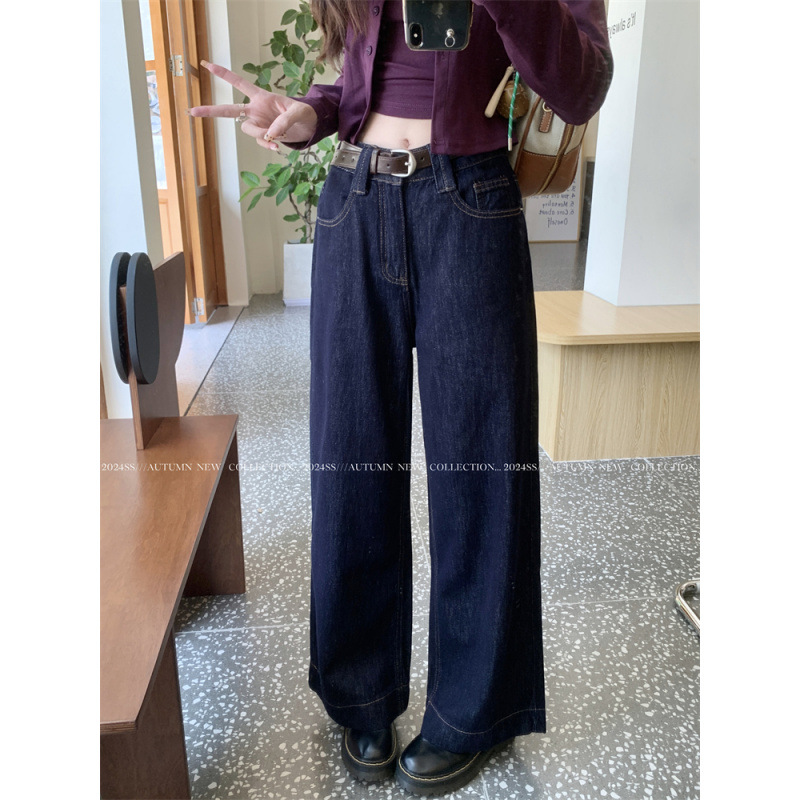 复古水洗阔腿牛仔裤女高腰宽松显瘦直筒长裤女