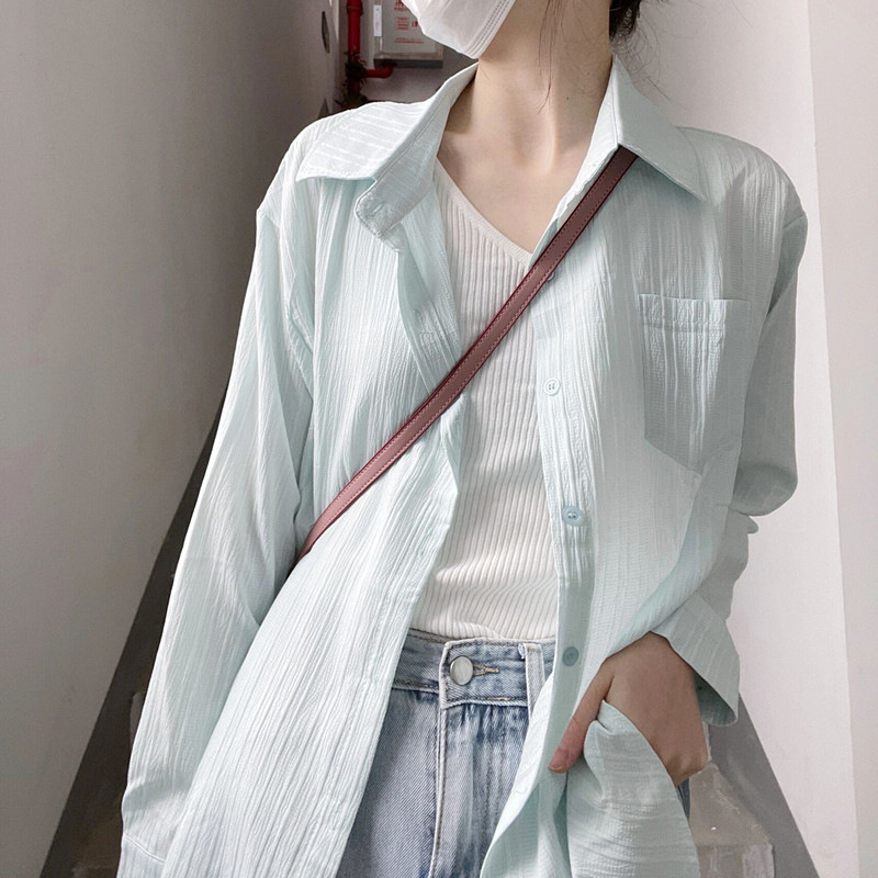 防晒衬衫女夏款韩系设计感小众宽松薄款开衫衬衣外套春秋外搭上衣