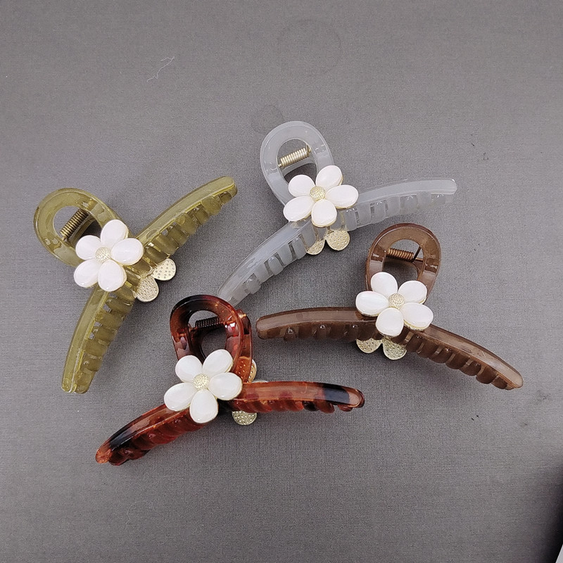 韩版高级感花朵发夹女后脑勺精致抓夹鲨鱼夹优雅夹子头饰大号夏季