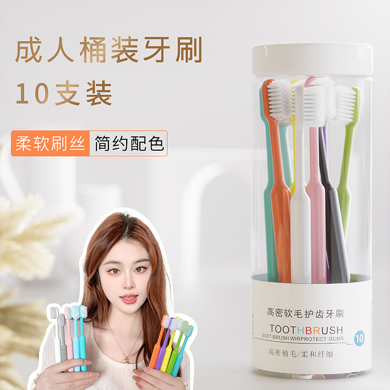 10支桶装糖果色成人软毛牙刷大学生情侣家用装