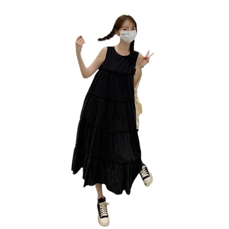 法式甜美系设计感圆领无袖暗纹背心裙女夏季新品时尚休闲拼接A字
