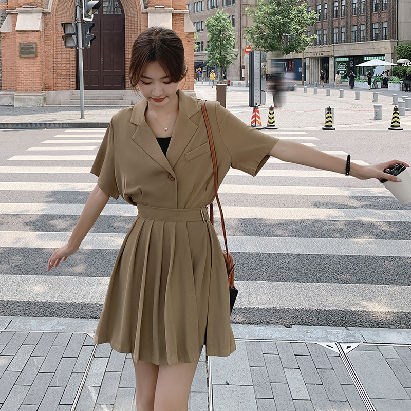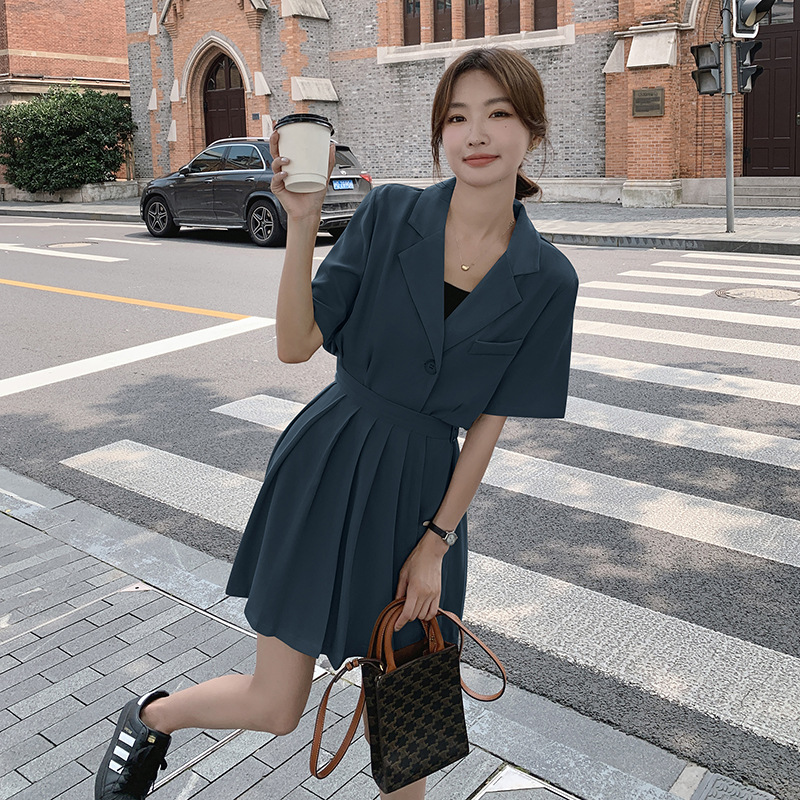 高级感时尚短款休闲外套西装裙套装女简约宽松显瘦显高新款两件套