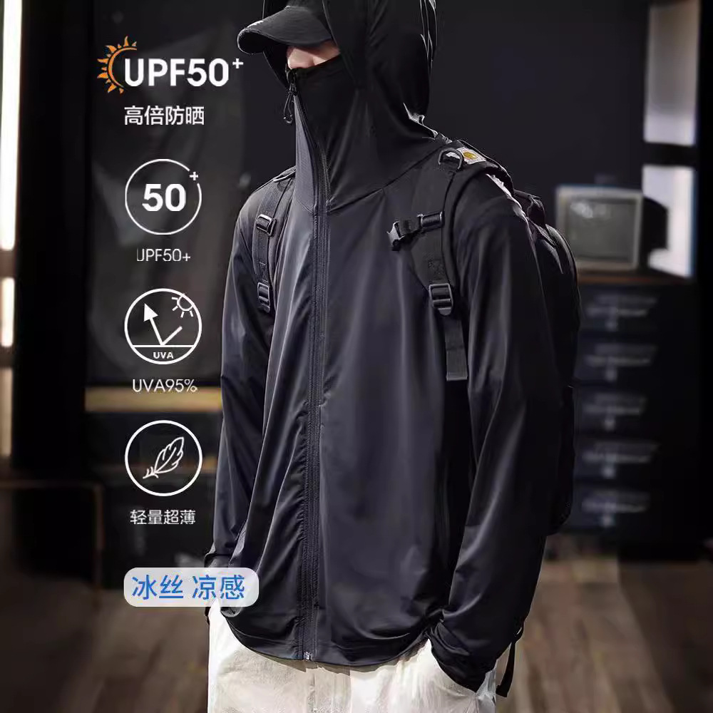 UPF50+户外凉感冰丝防晒衣男夏季大码轻薄透气防紫外线钓鱼防晒服