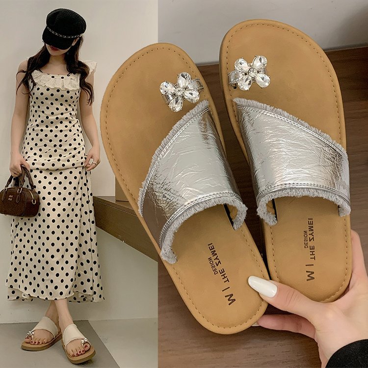 法式夹脚人字拖女夏2025新款高级感银色套趾凉拖海边夹趾外穿拖鞋