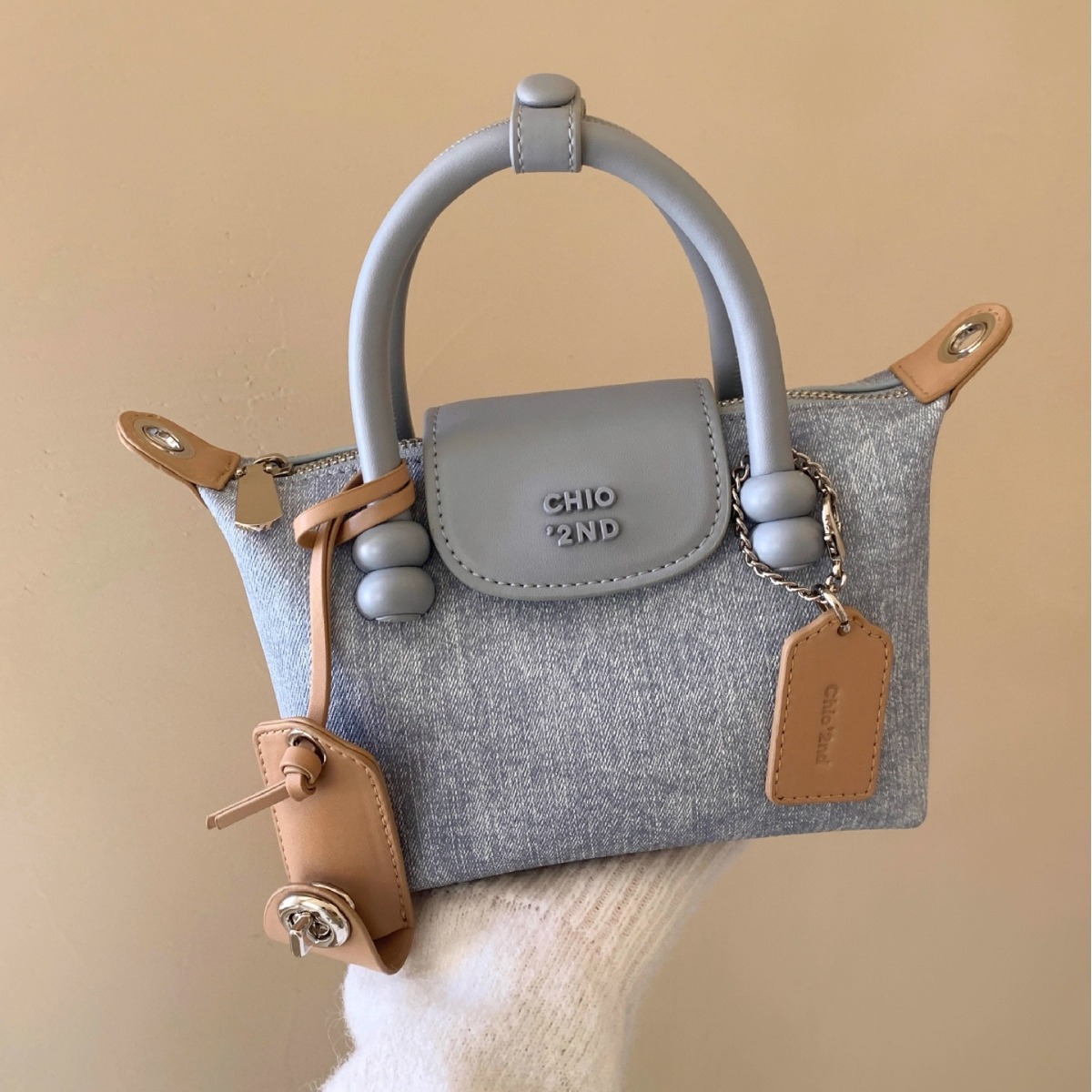 南风Chio2nd铂蓝丹宁托特包包女新款手提包上班小拎包斜挎包