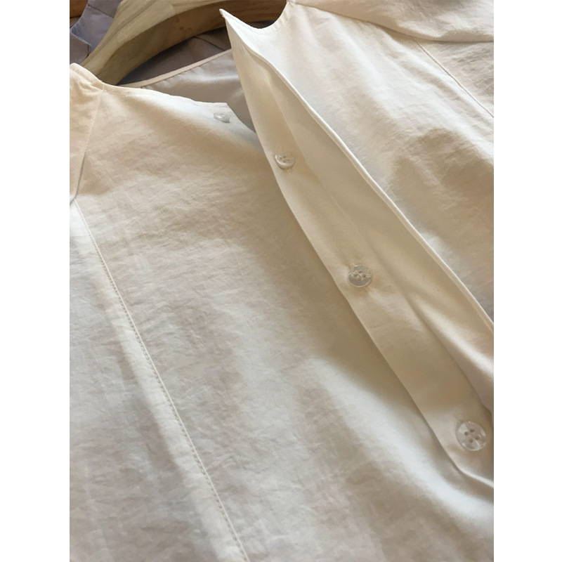 面料绝了~质感绝绝子!!极简风宽松廓版小圆领灯笼袖衬衫上衣女