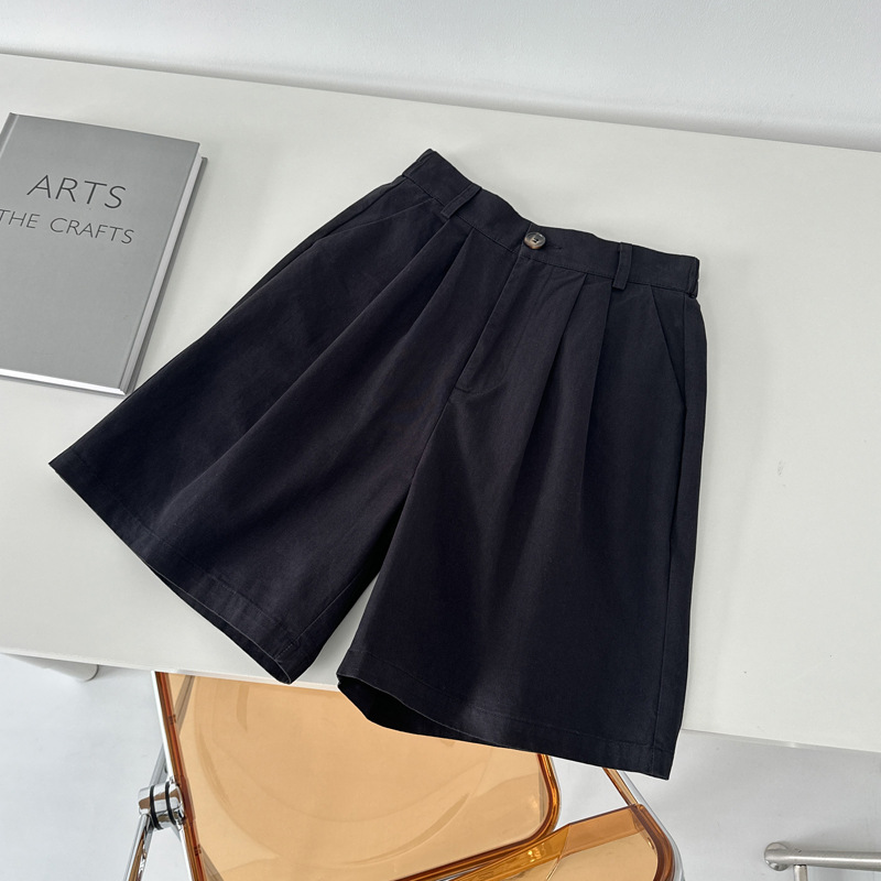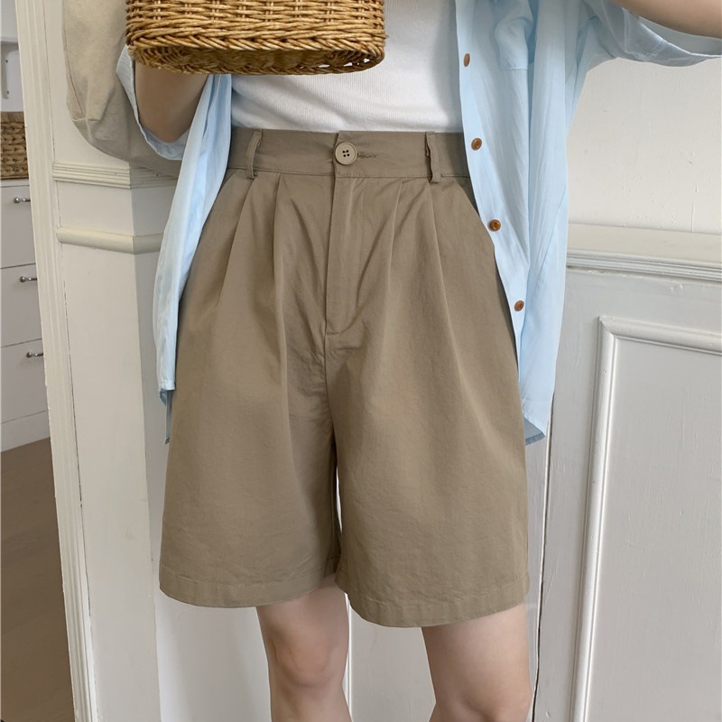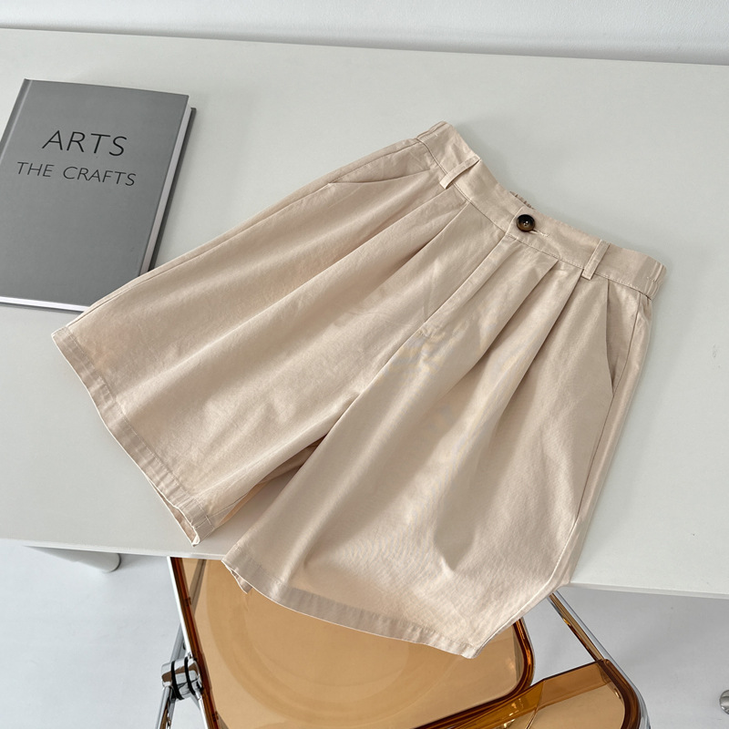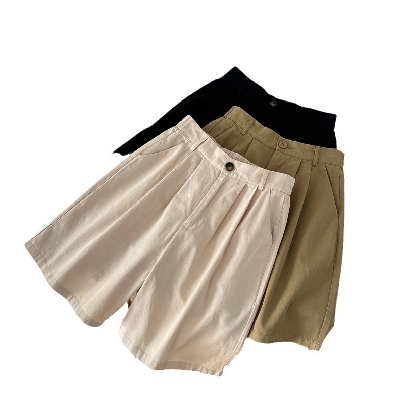 (水洗斜纹短裤)棉阔腿直筒休闲夏日系百搭宽松显瘦短裤