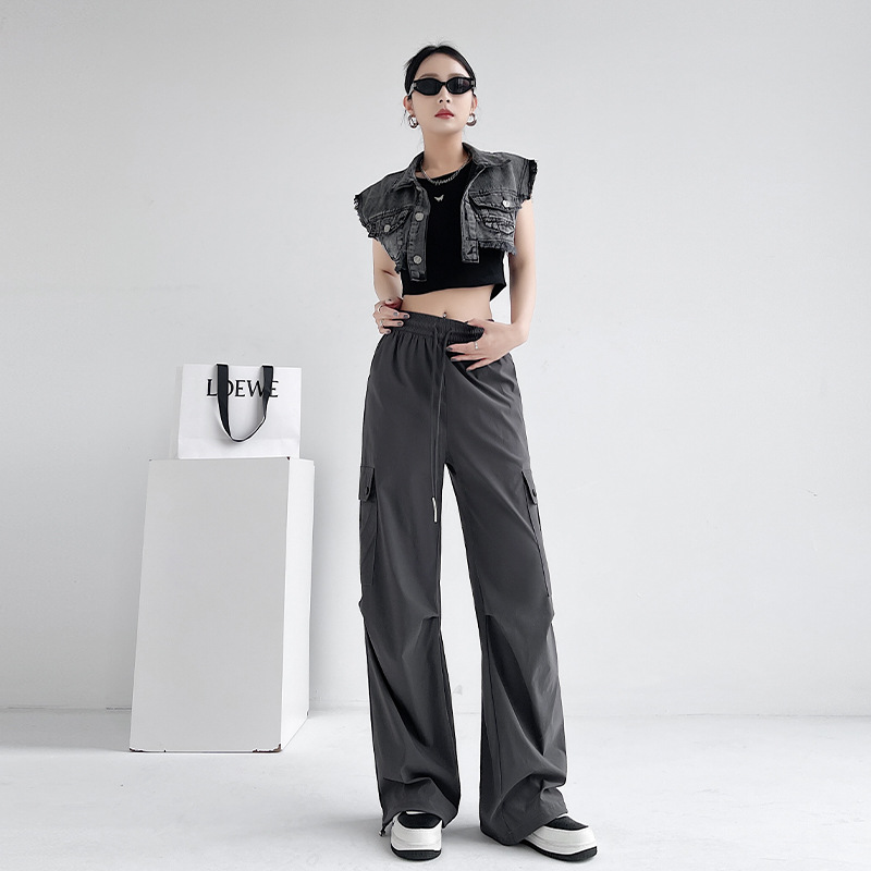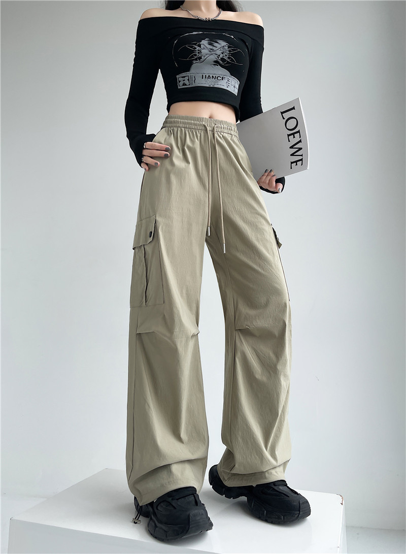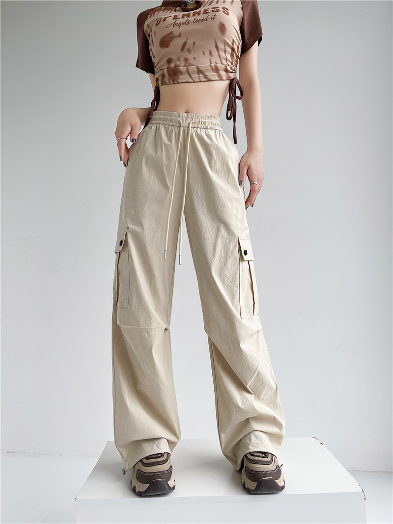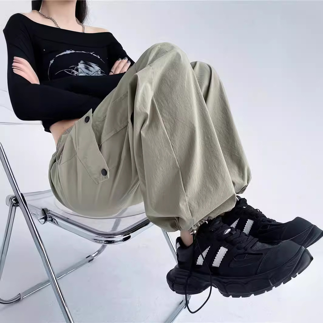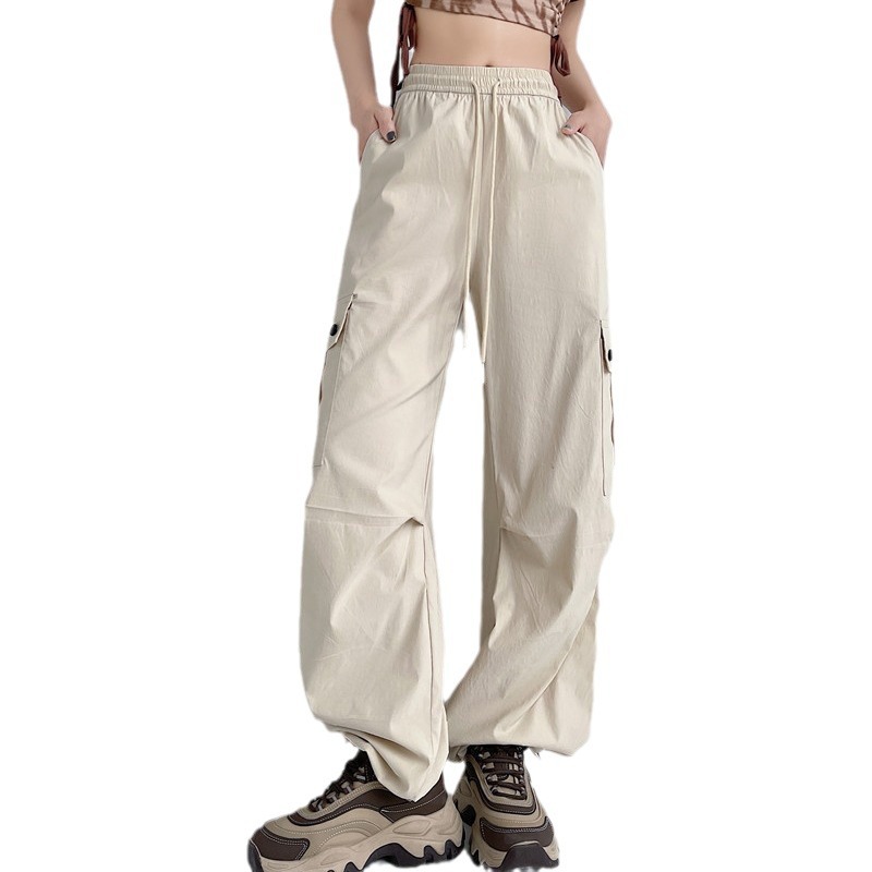 抽绳束脚工装休闲裤女春夏薄款设计感褶皱宽松美式长裤子