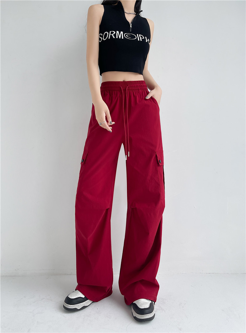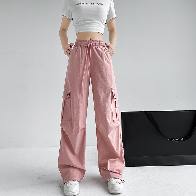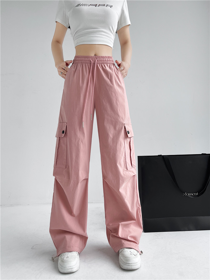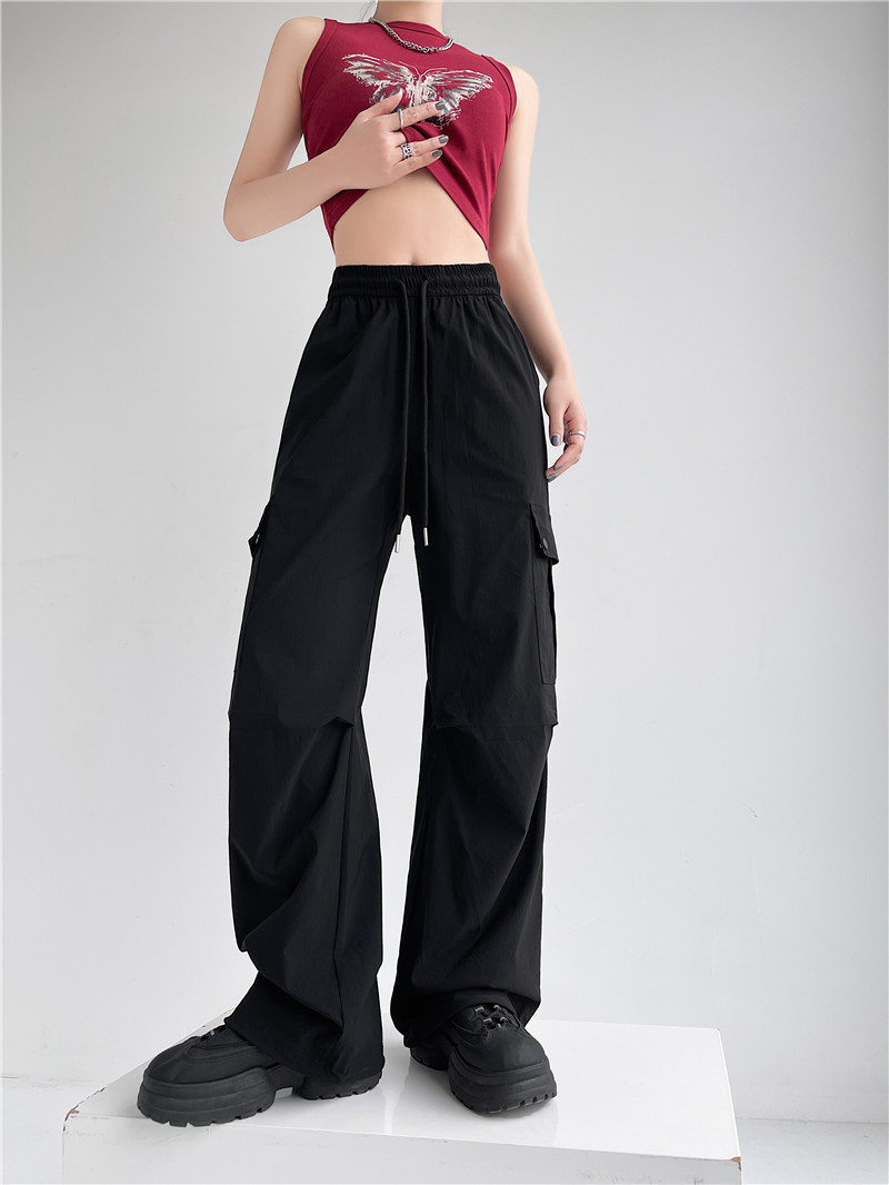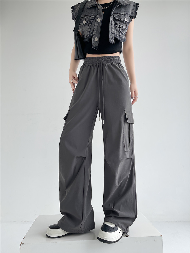 抽绳束脚工装休闲裤女春夏薄款设计感褶皱宽松美式长裤子