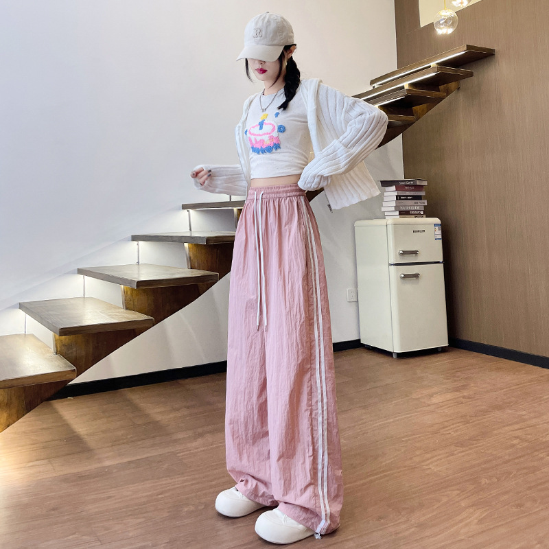 多巴胺双杠工装裤子女夏季新款高腰休闲运动裤垂感窄版两穿阔腿裤