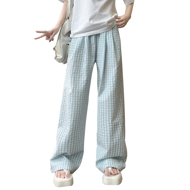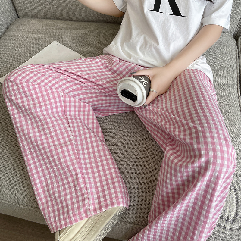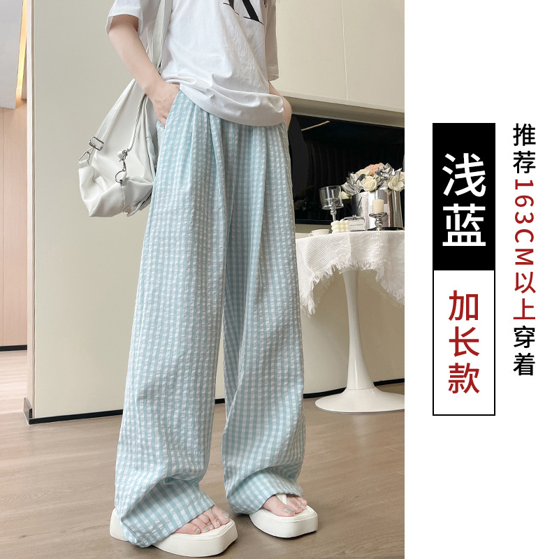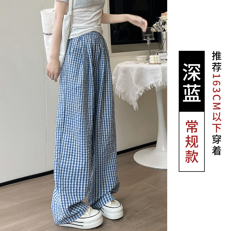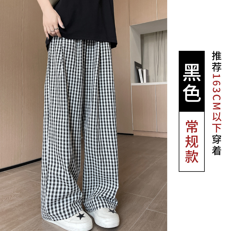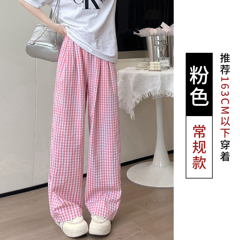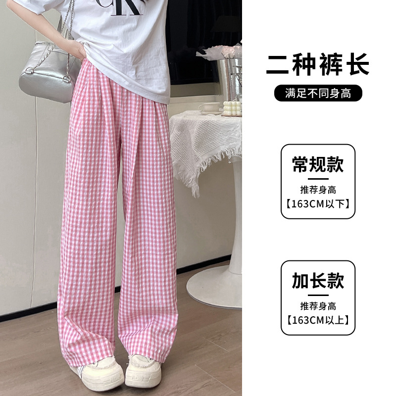 日系慵懒格子山本裤女夏季高腰宽松撞色休闲遛弯裤垂感直筒阔腿裤