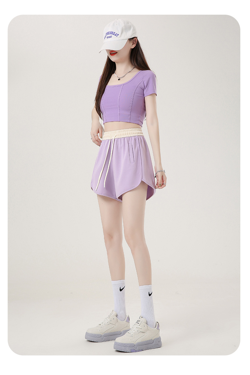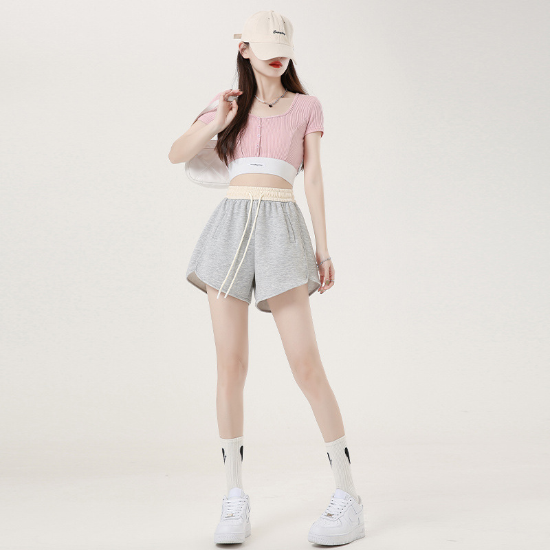 空气层运动短裤女裤子夏季新款外穿休闲裤垂感百搭撞色三分裤