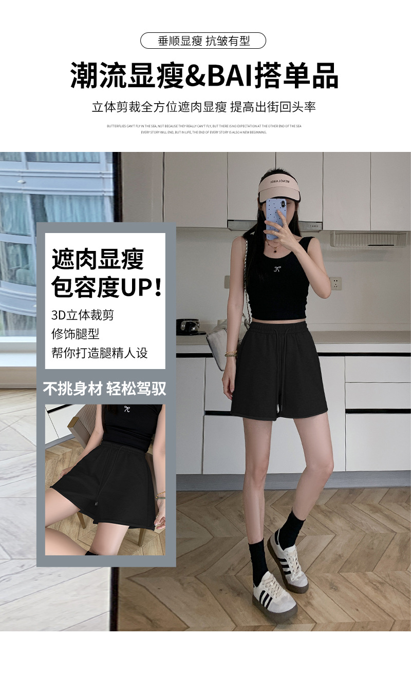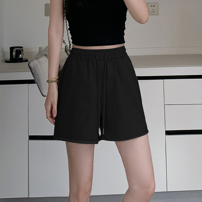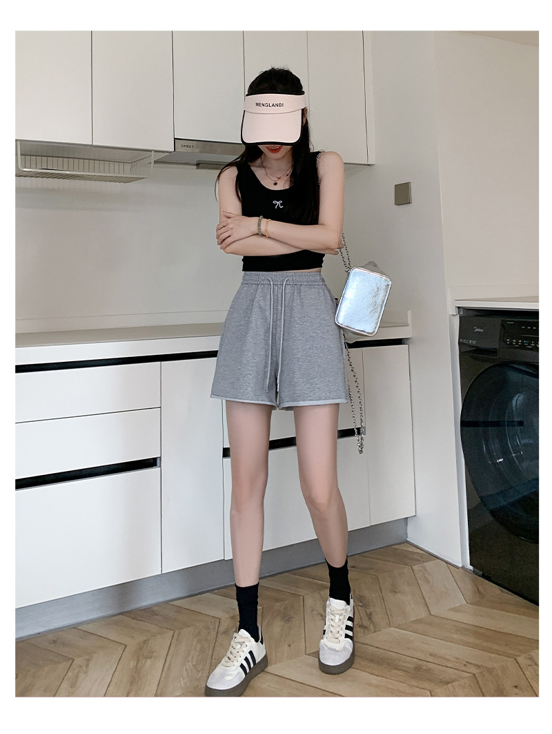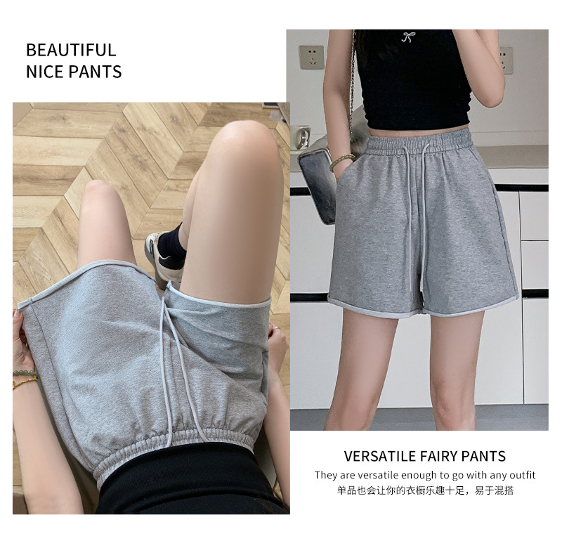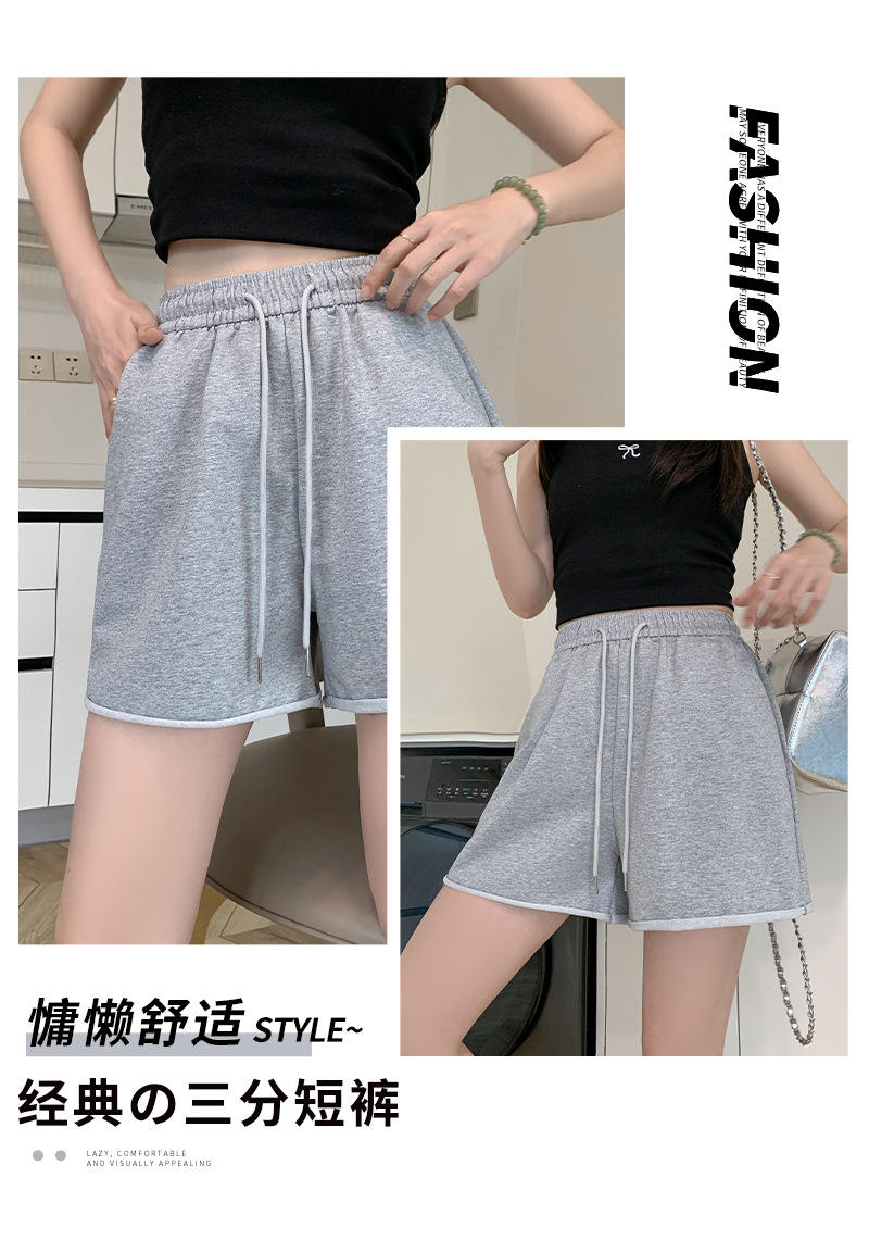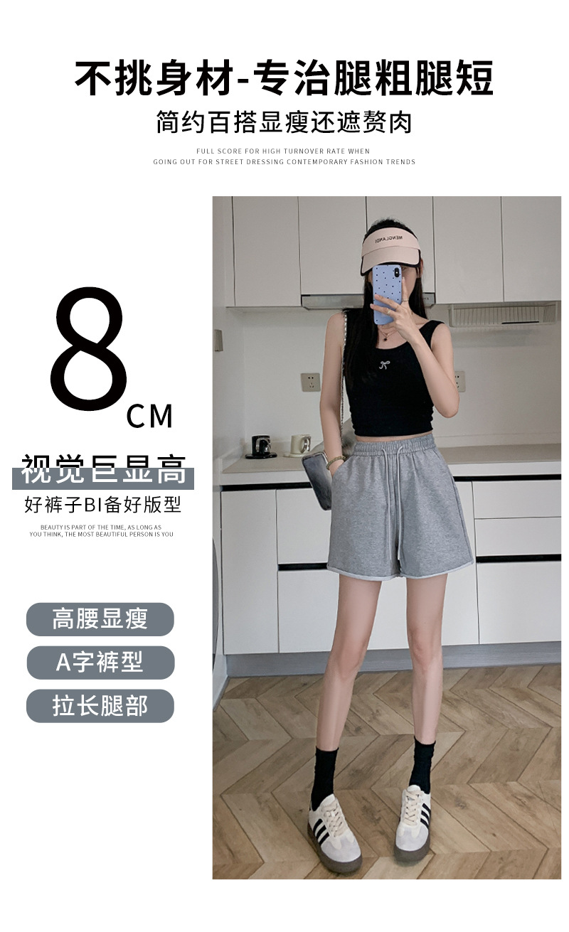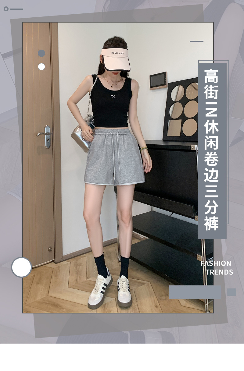 美式卷边短裤女夏季新款高腰薄款宽松显瘦直筒三分运动短裤子