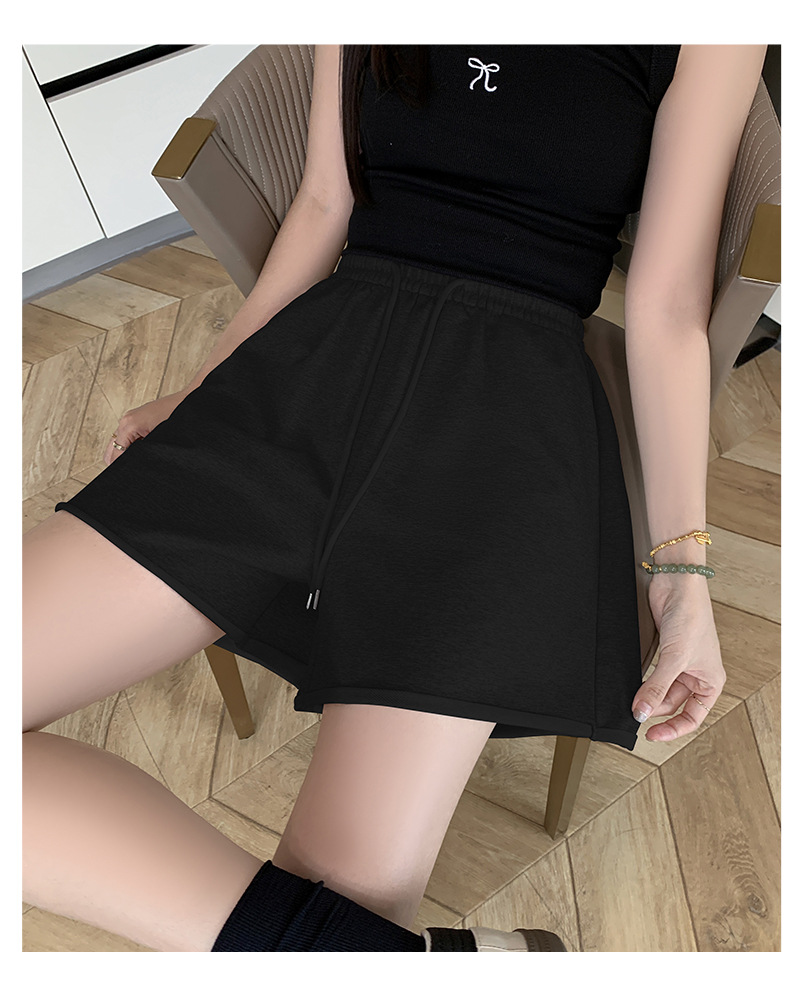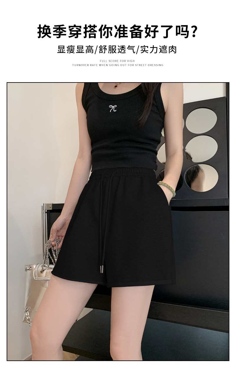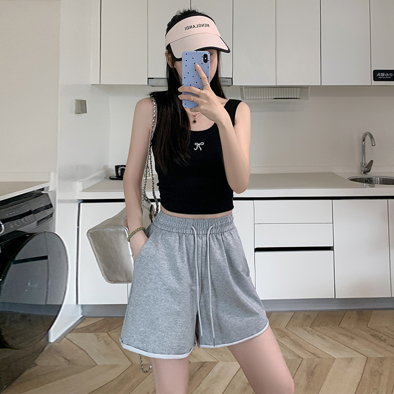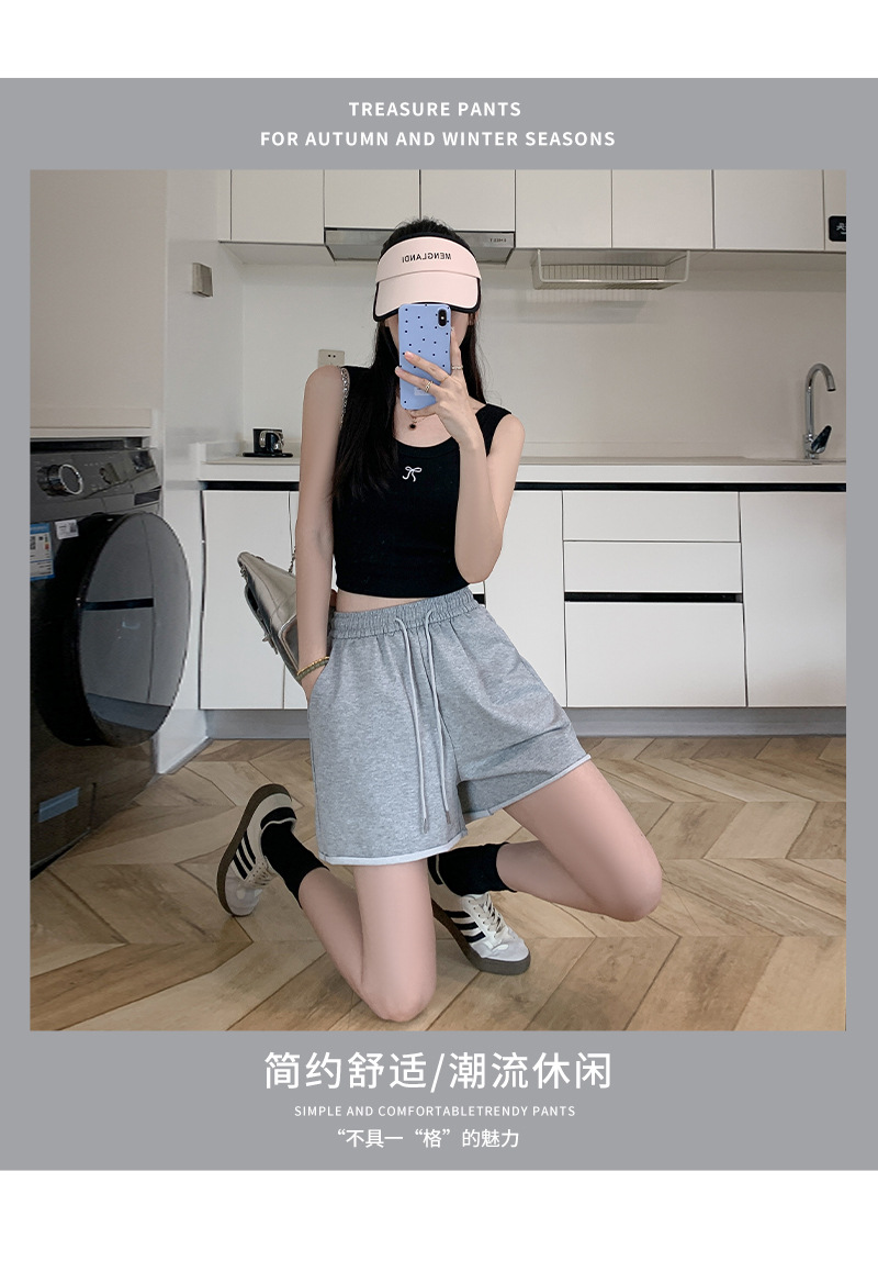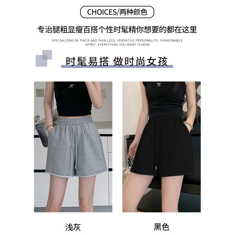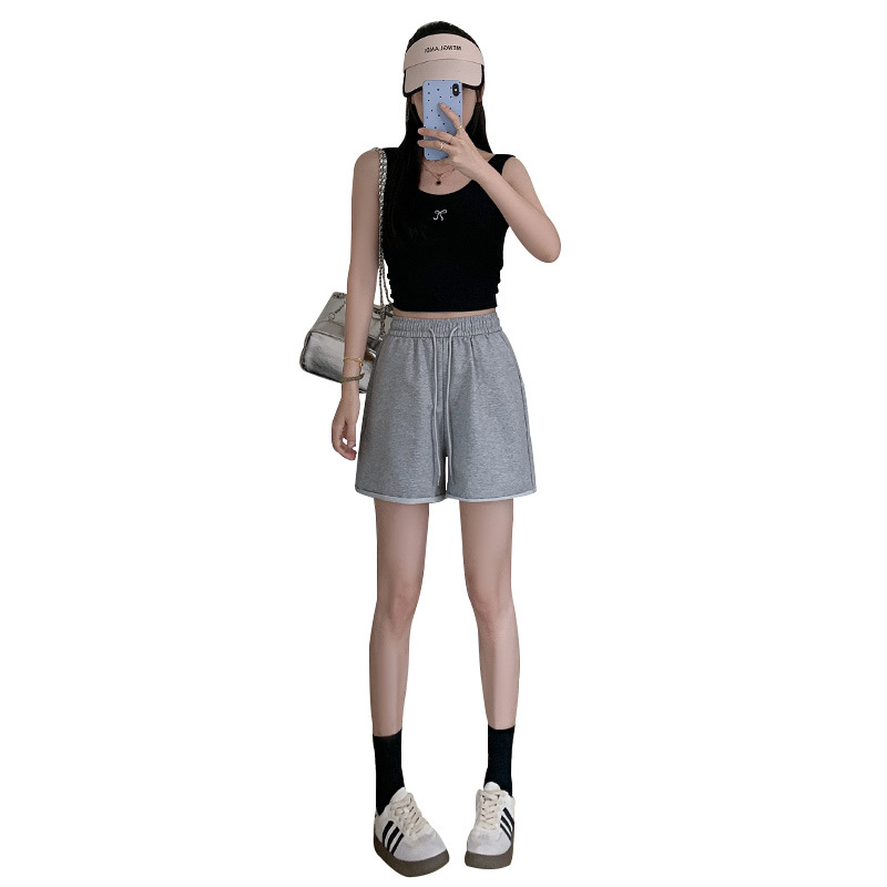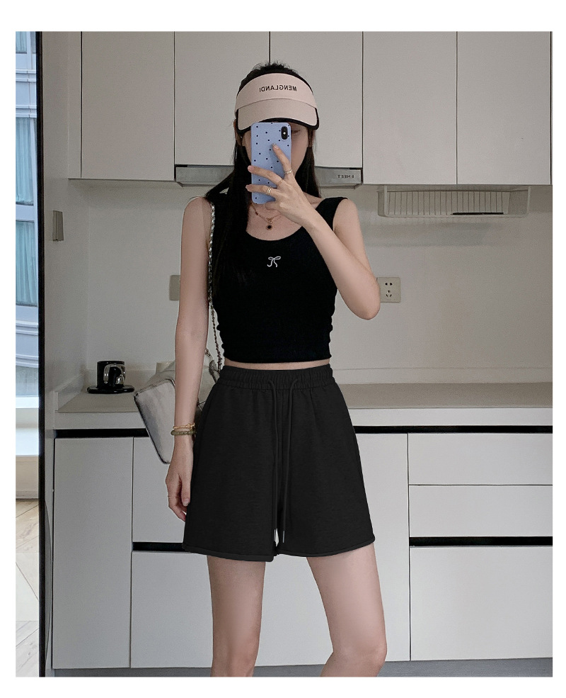 美式卷边短裤女夏季新款高腰薄款宽松显瘦直筒三分运动短裤子