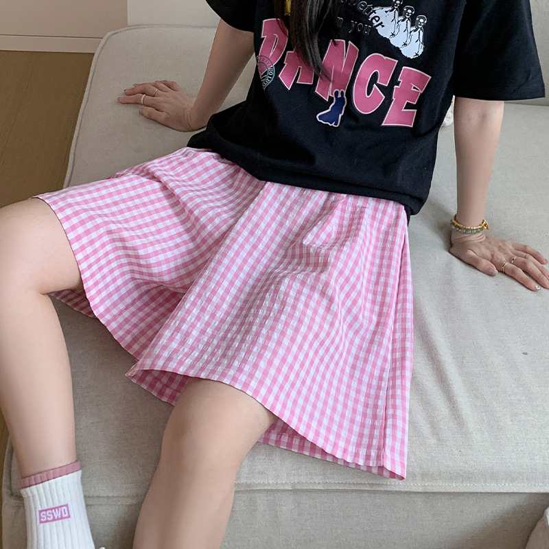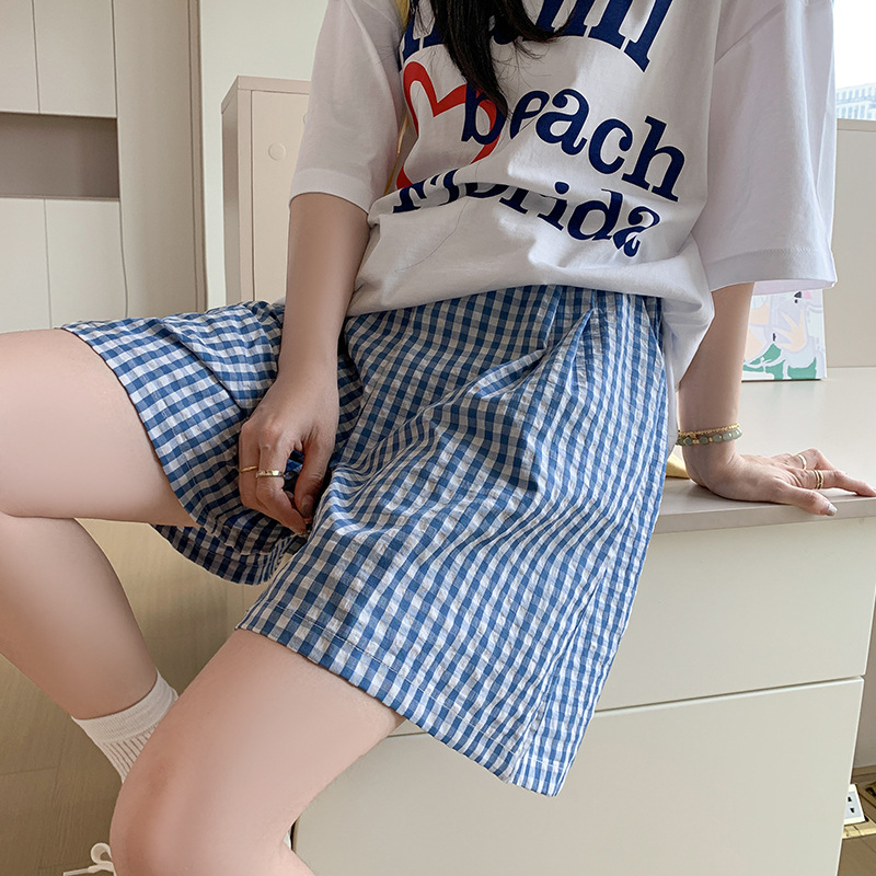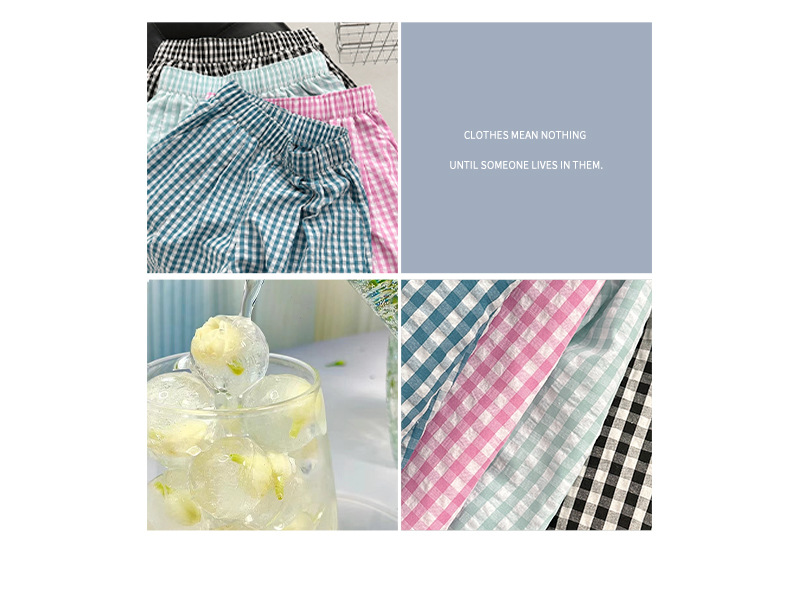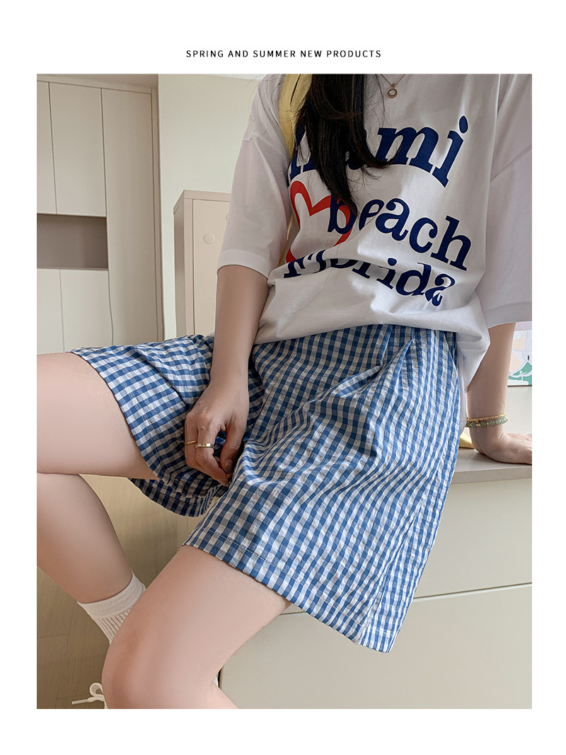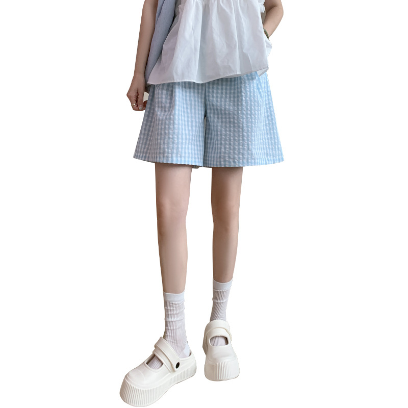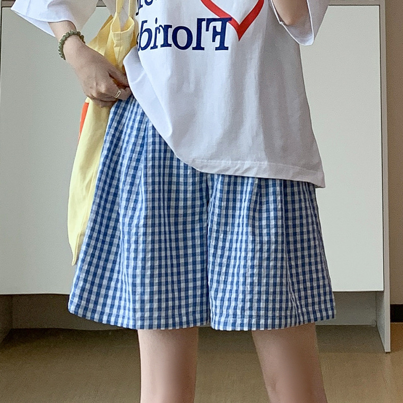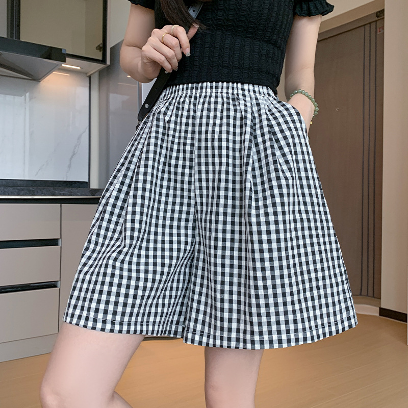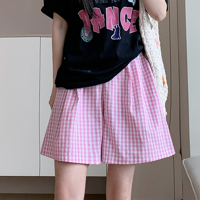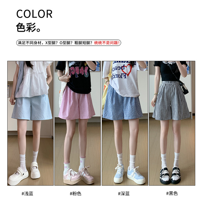 格子五分裤女夏季高腰休闲慵懒感遛弯裤宽松透气直筒撞色阔腿短裤