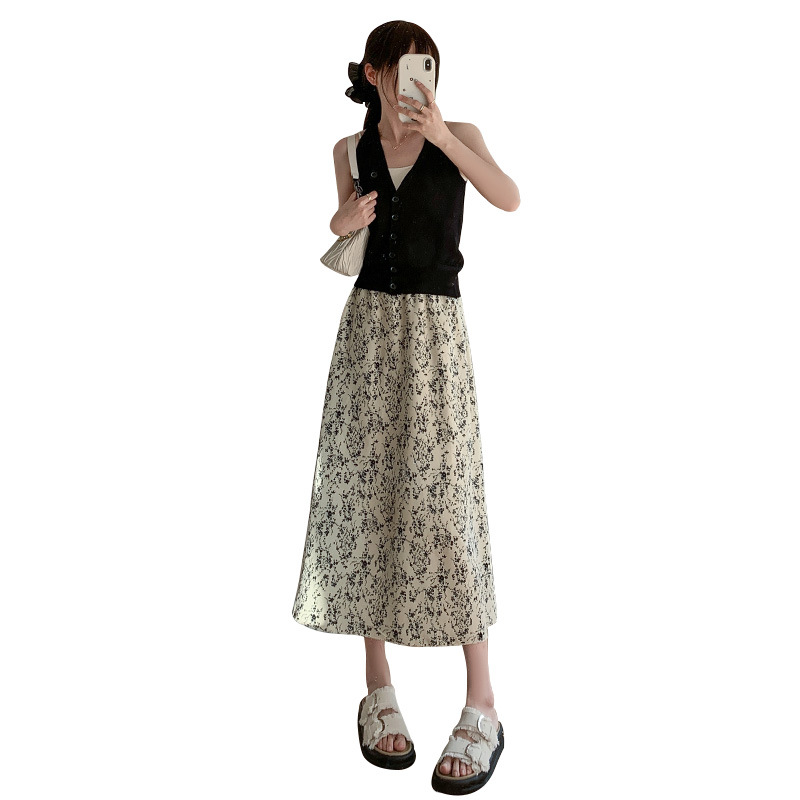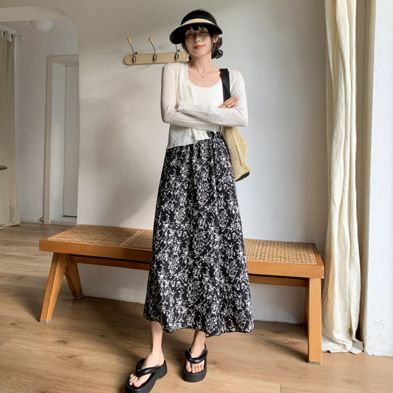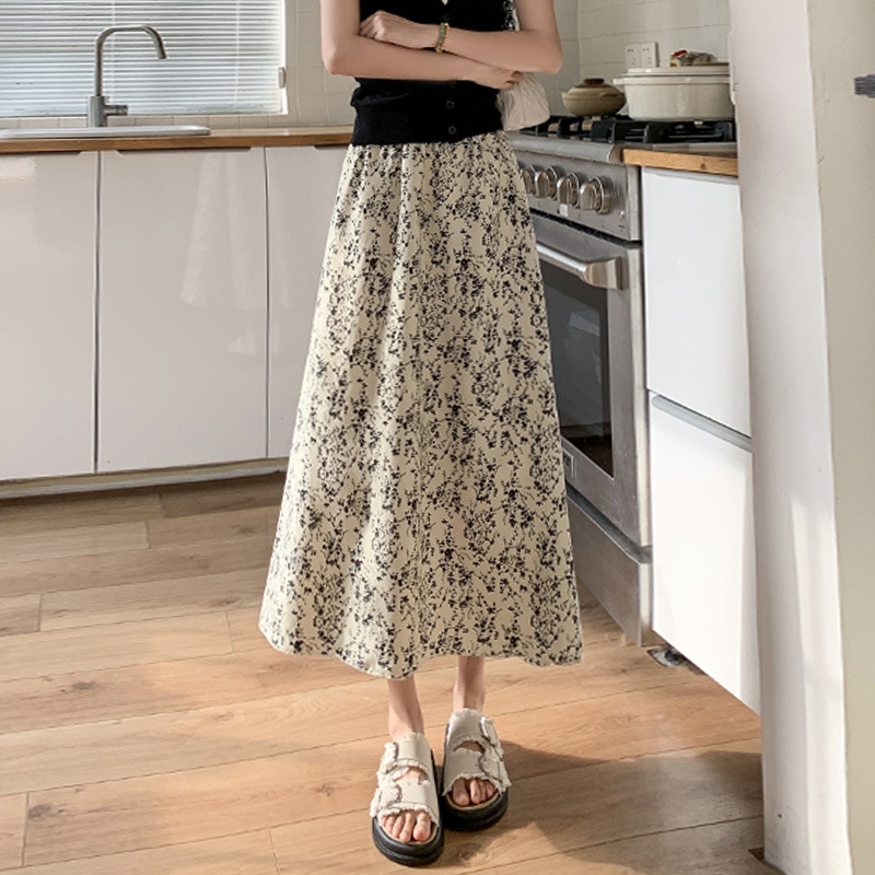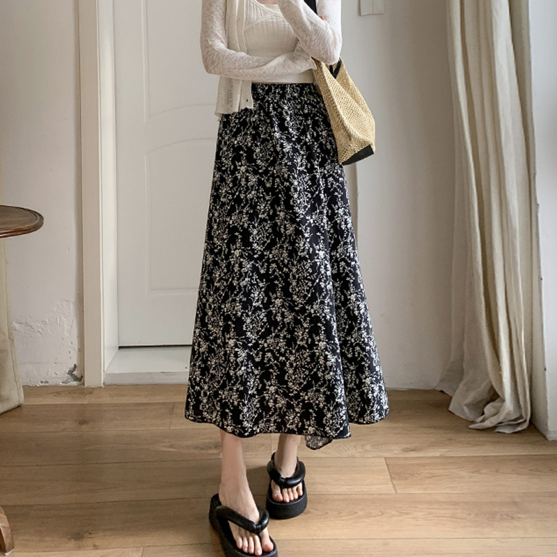 法式复古碎花半身裙夏女韩版宽松A字大裙摆伞裙慵懒减龄中长裙子