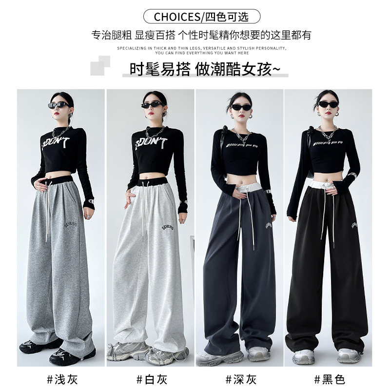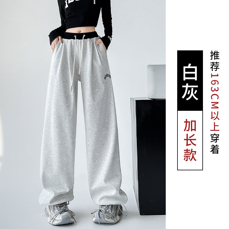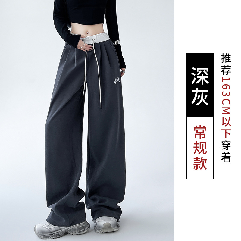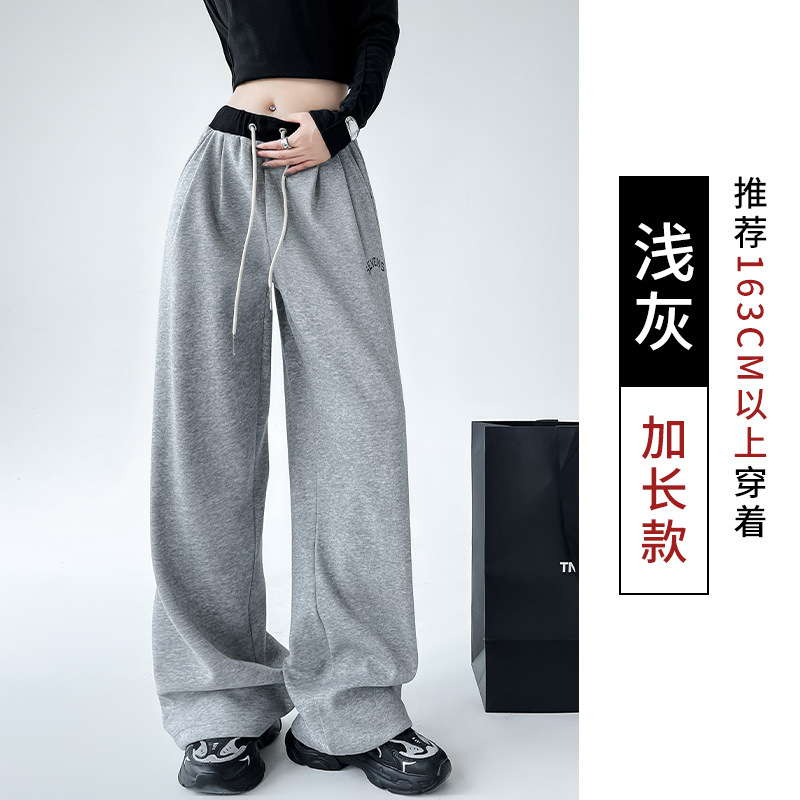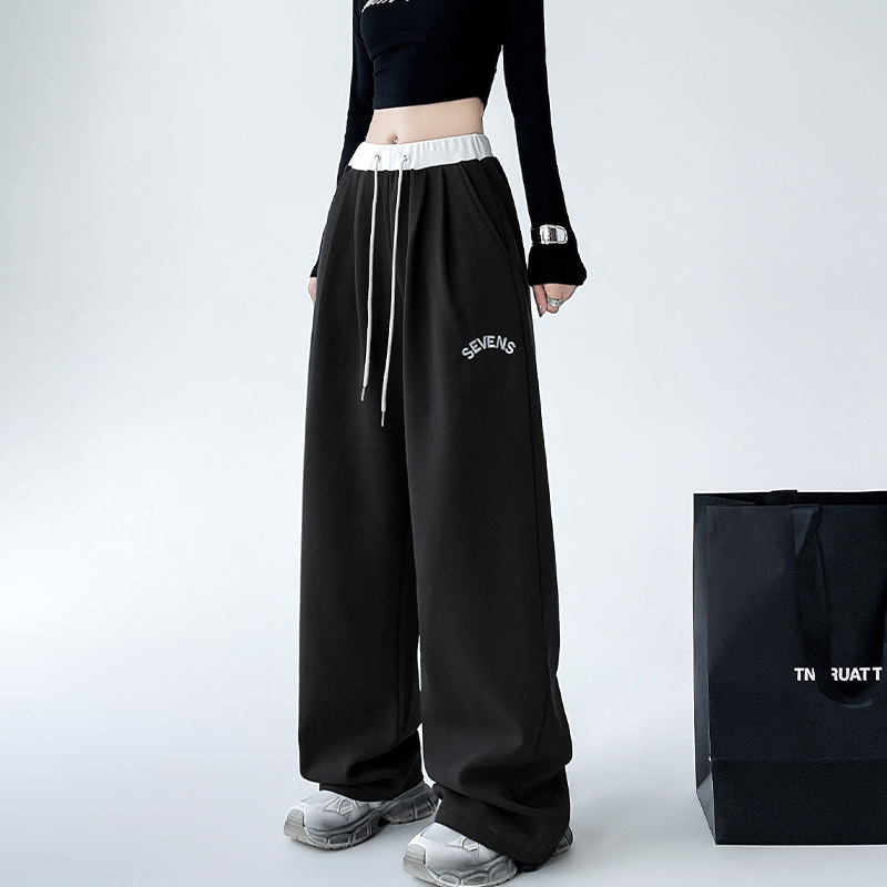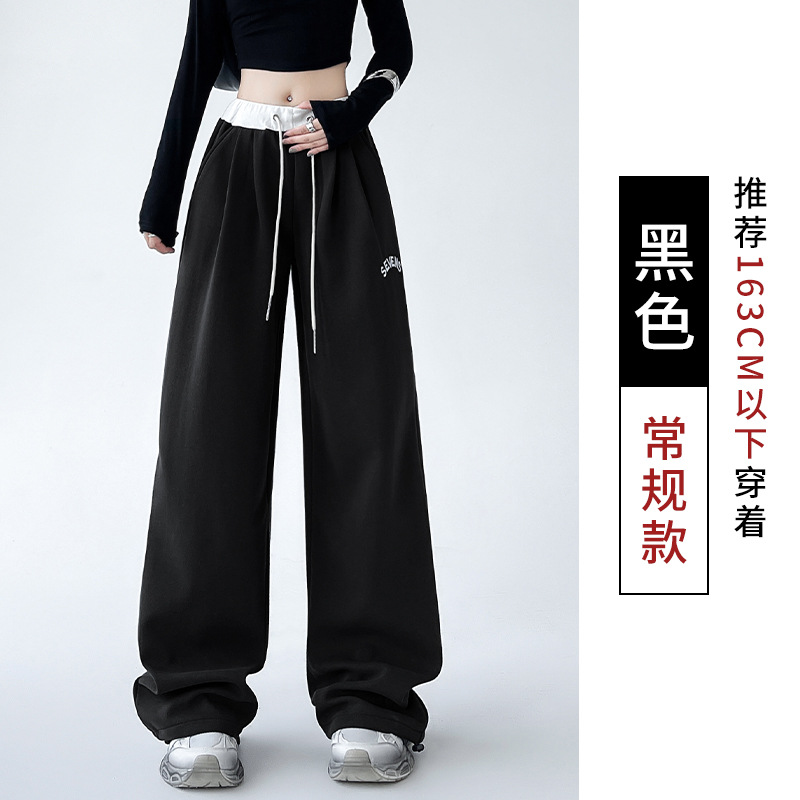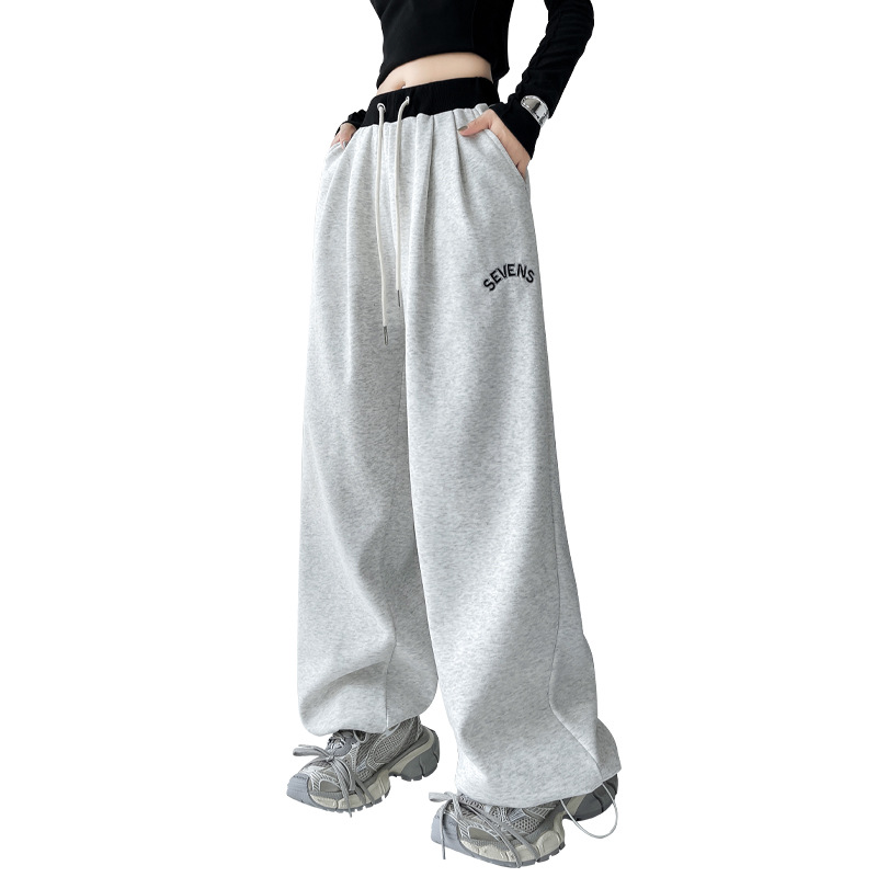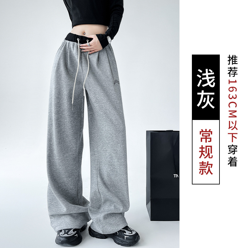 美式华棉运动裤女秋冬高腰宽松刺绣阔腿裤子直筒显瘦拖地休闲卫裤