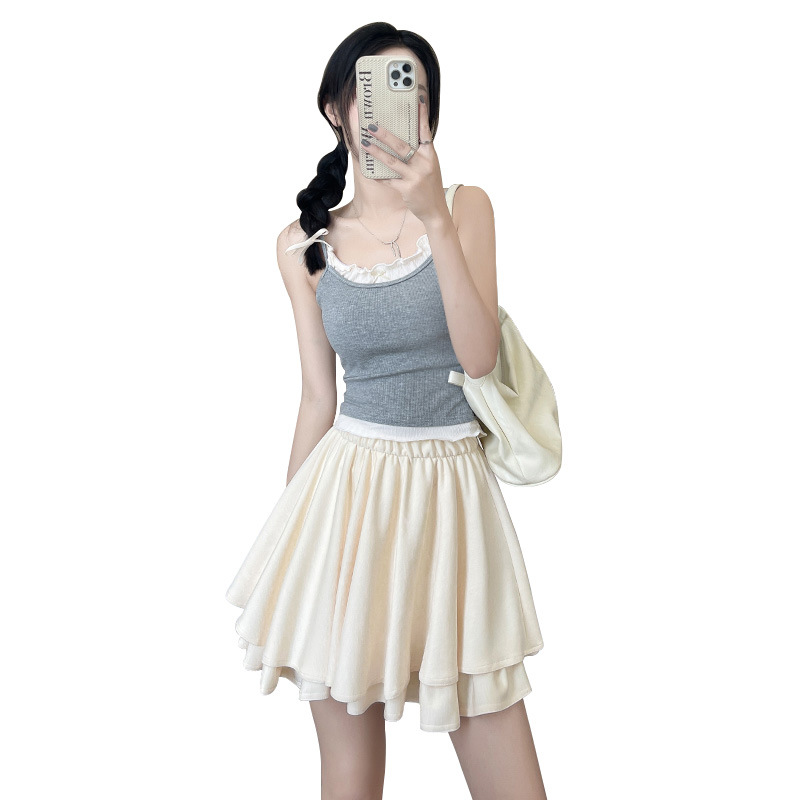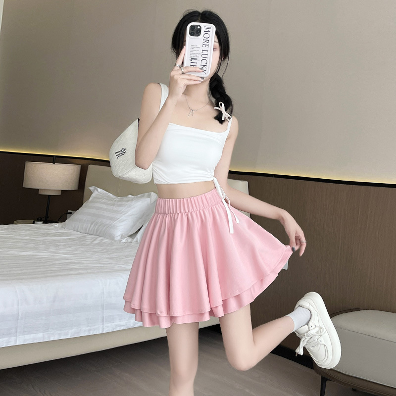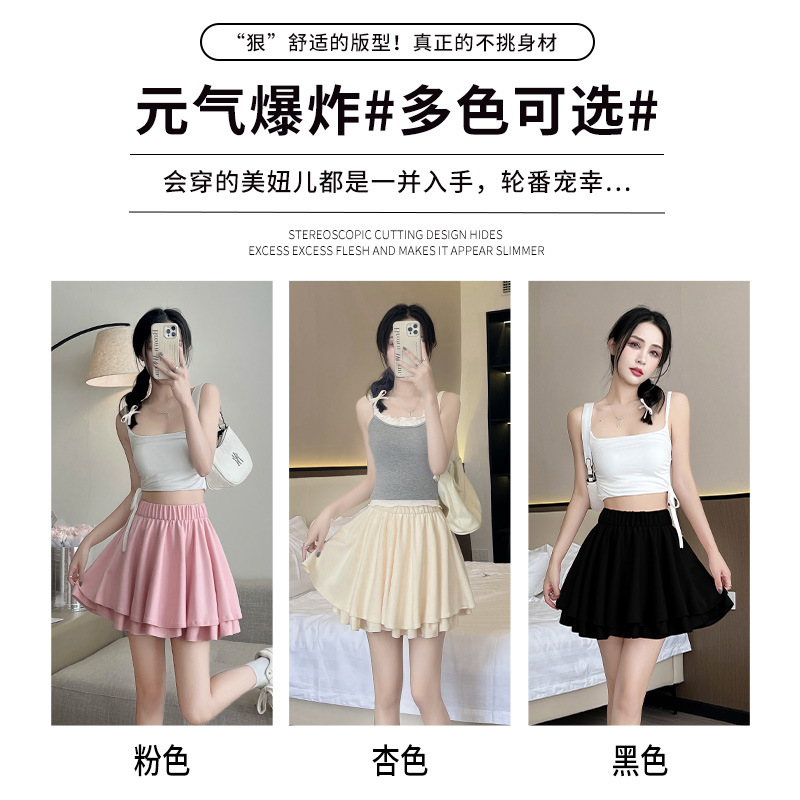 时尚芭蕾风双层蛋糕半身裙女夏季高腰甜美A字裙摆遮胯显瘦蓬蓬裙