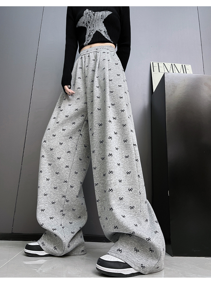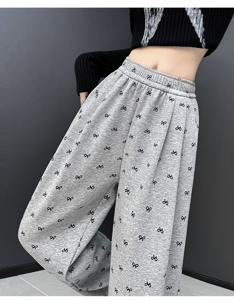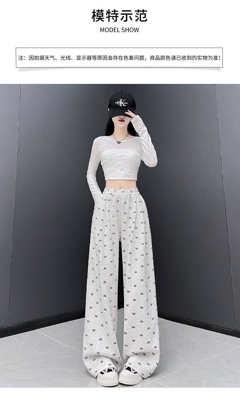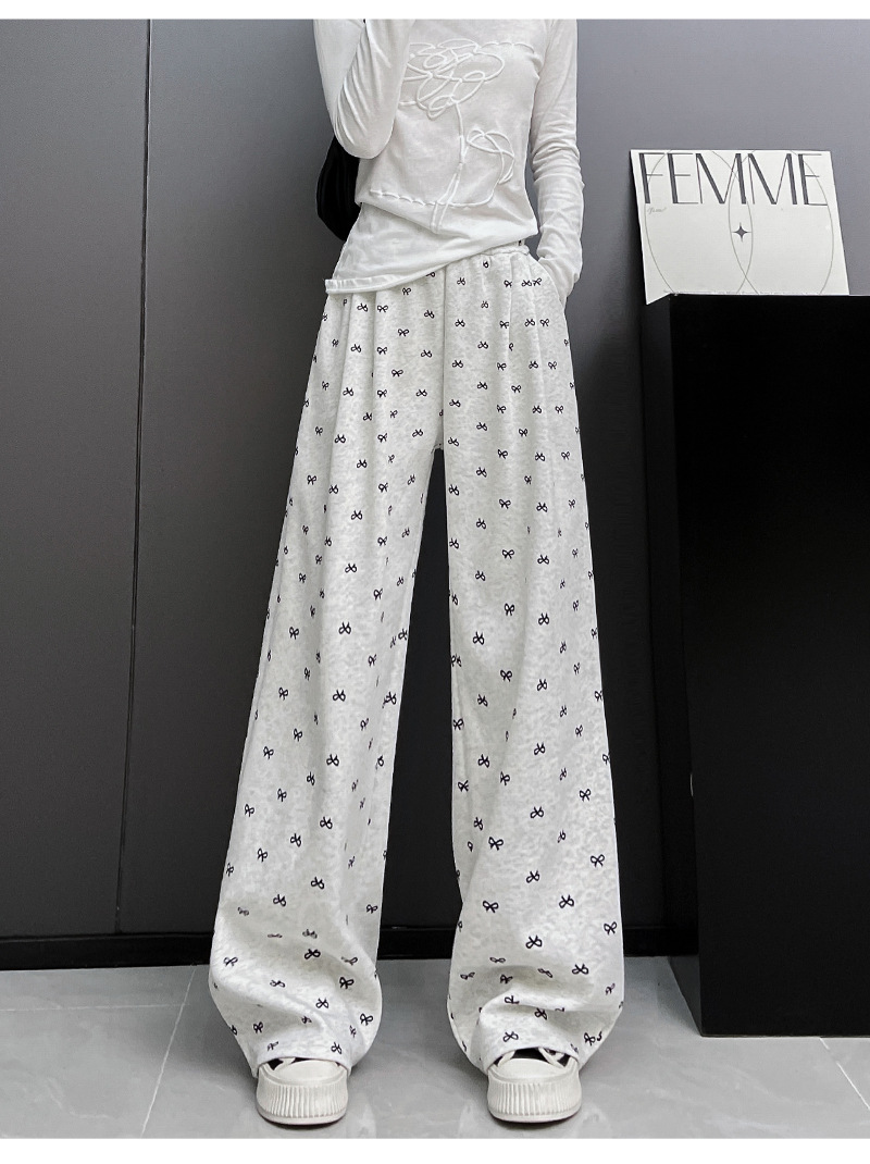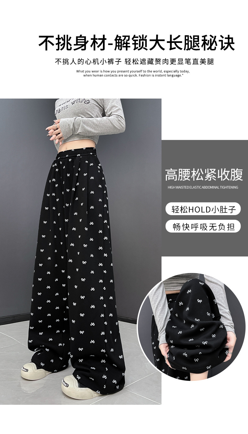 年设计感蝴蝶结印花阔腿裤休闲裤女装秋季高腰直筒裤拖地裤