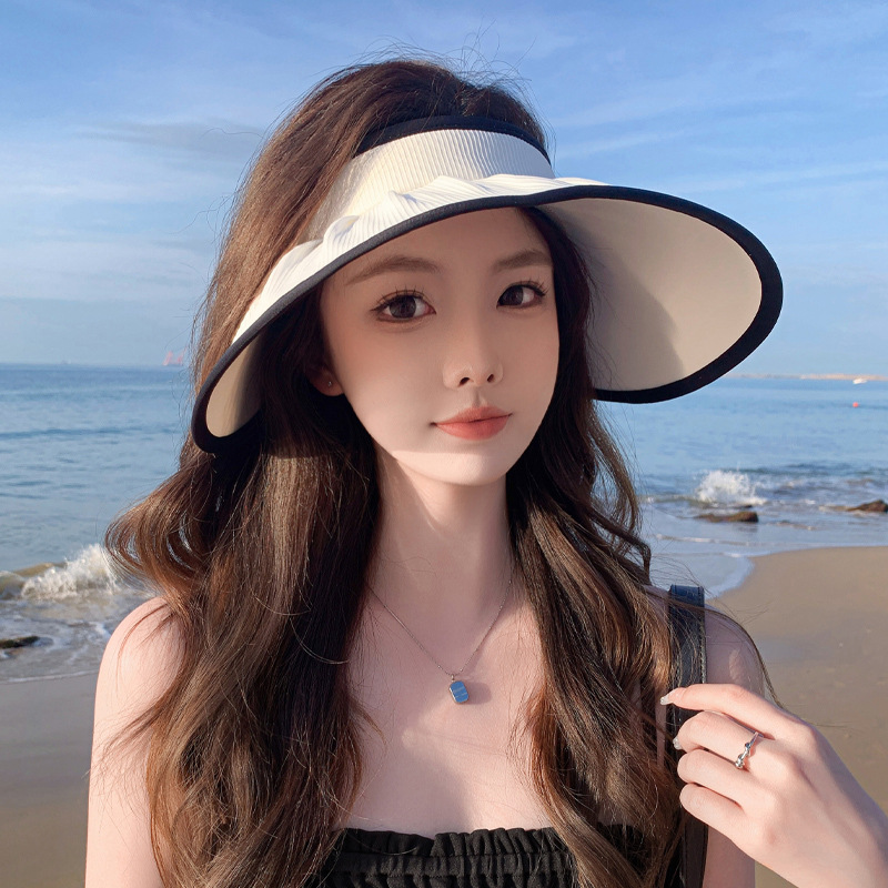新款波浪纹高倍数防晒帽大檐空顶帽小清新甜美风格遮阳帽