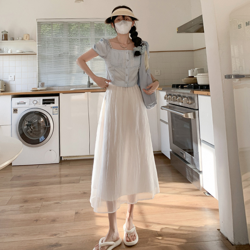 温柔风半身裙女夏季新款高腰长款休闲百搭显瘦小个子A字裙子