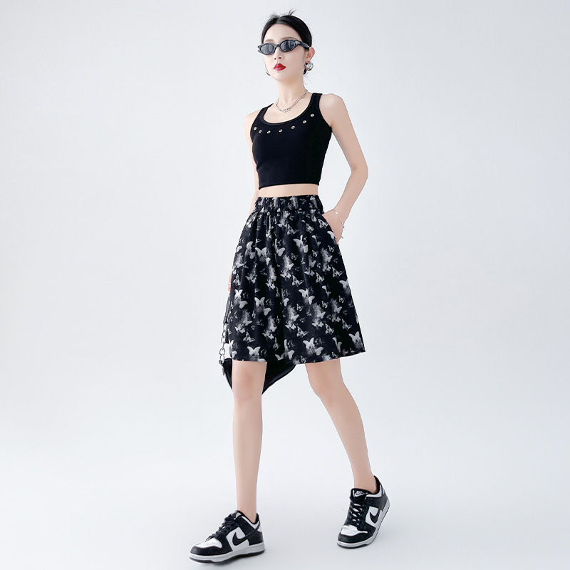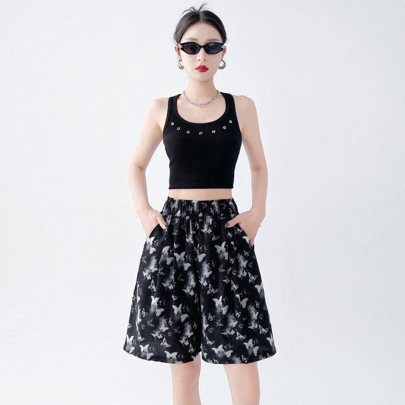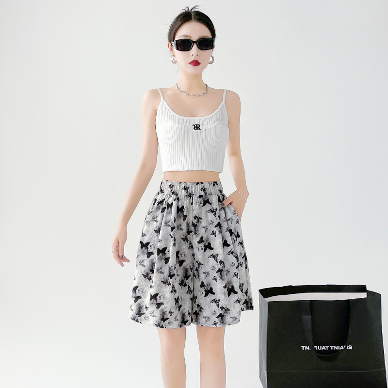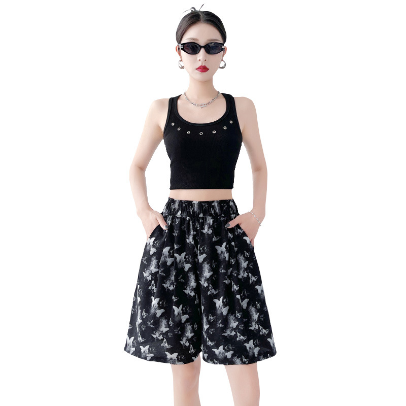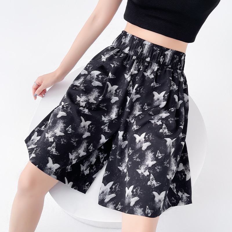 复古风冰丝蝴蝶宽松休闲短裤女24夏季新款高腰显瘦百搭阔腿五分裤