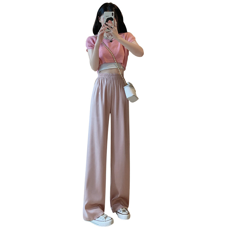 醋酸冰丝阔腿裤女夏季薄款百搭休闲拖地裤高腰垂感宽松裤子女