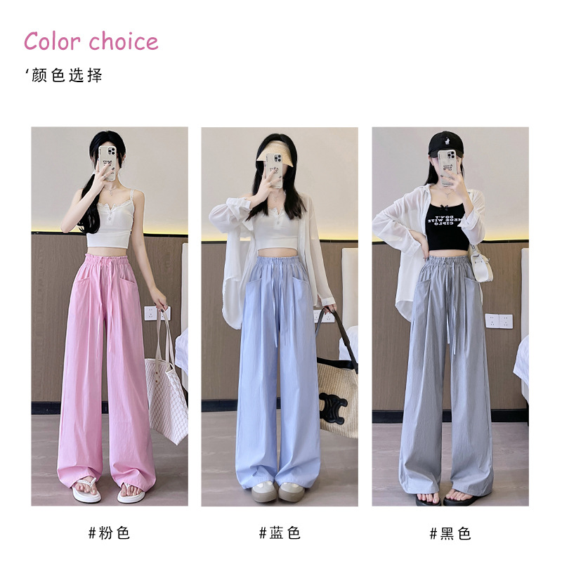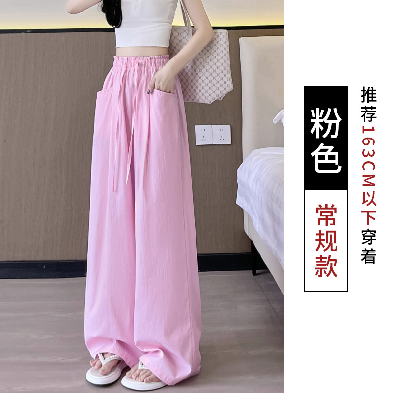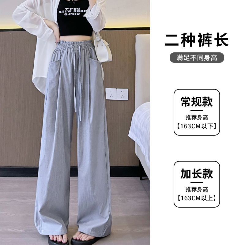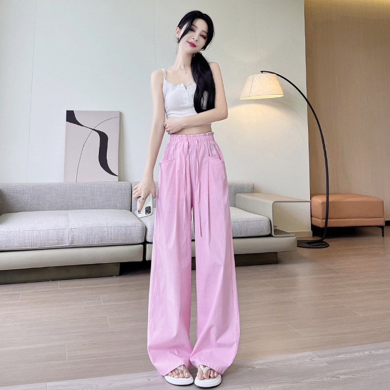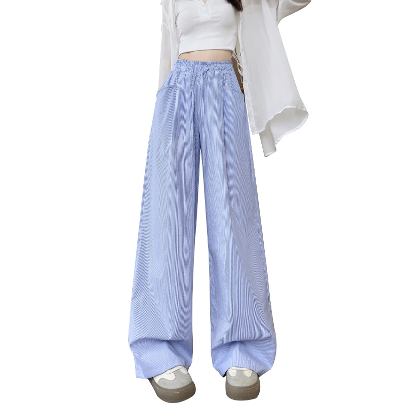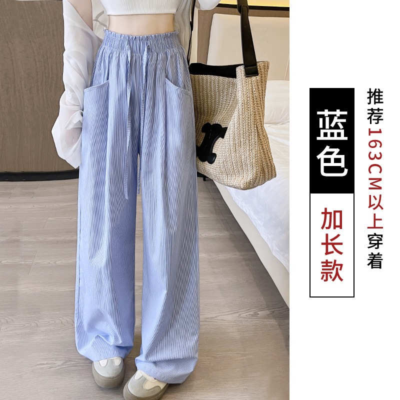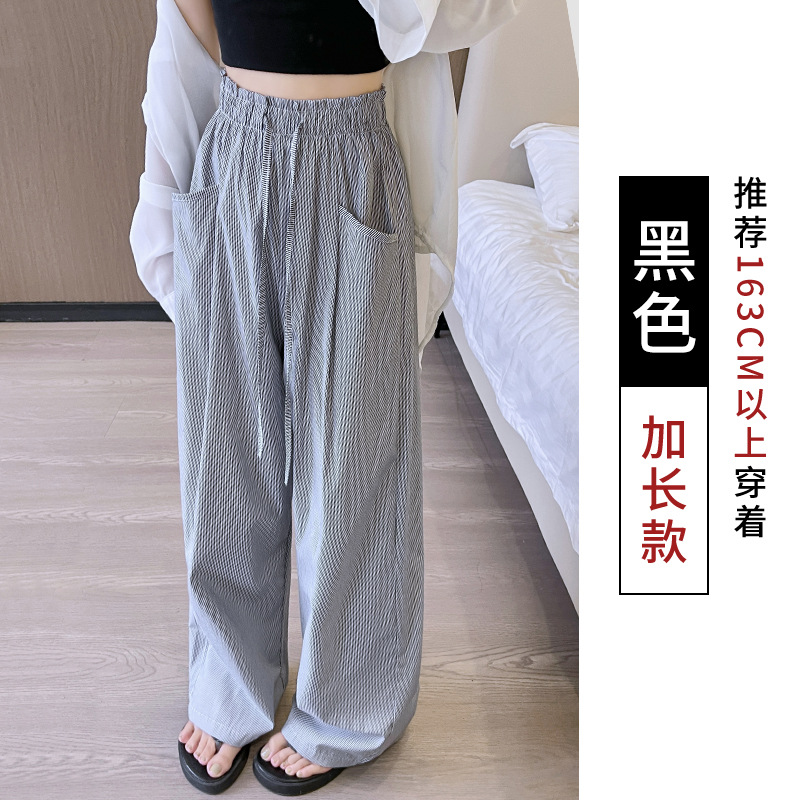 韩系松紧花苞腰条纹阔腿裤女夏季宽松高腰显瘦垂感拖地直筒休闲裤