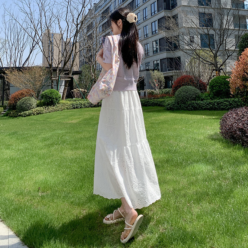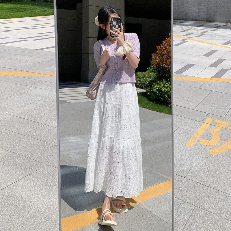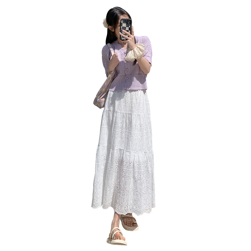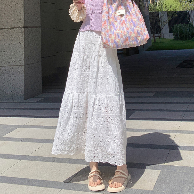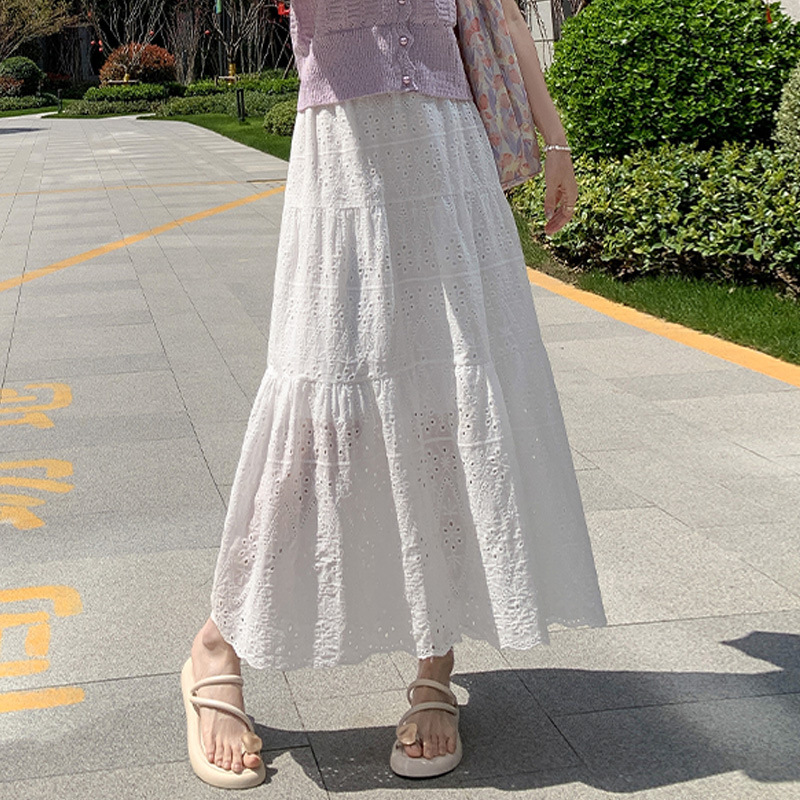 法式镂空三层蕾丝裙女高腰24春夏小个子白色半身蛋糕长裙遮胯显瘦