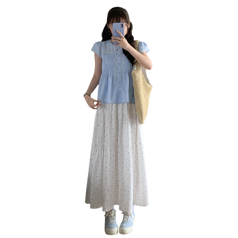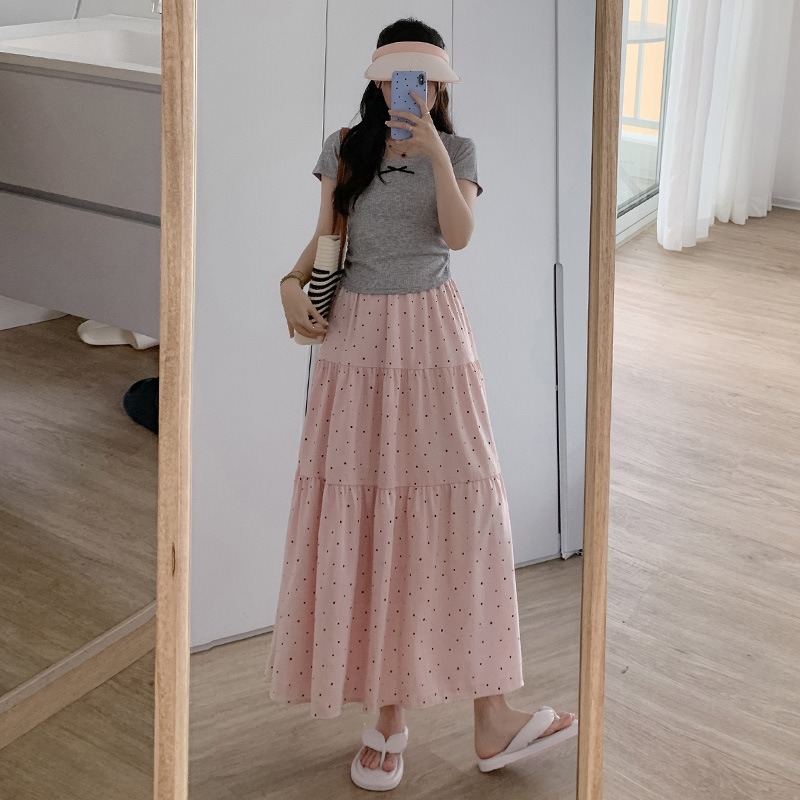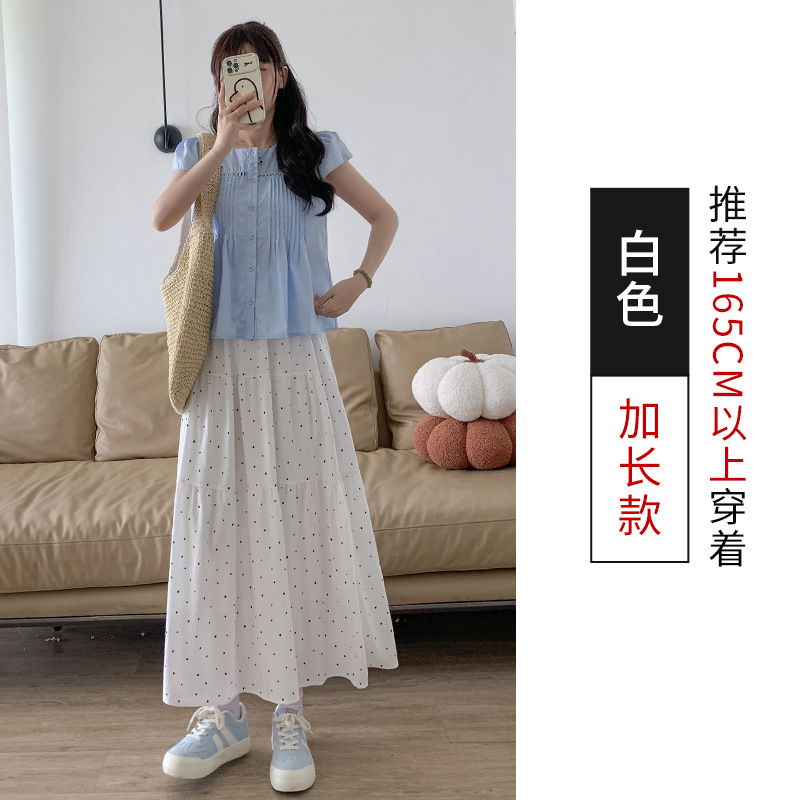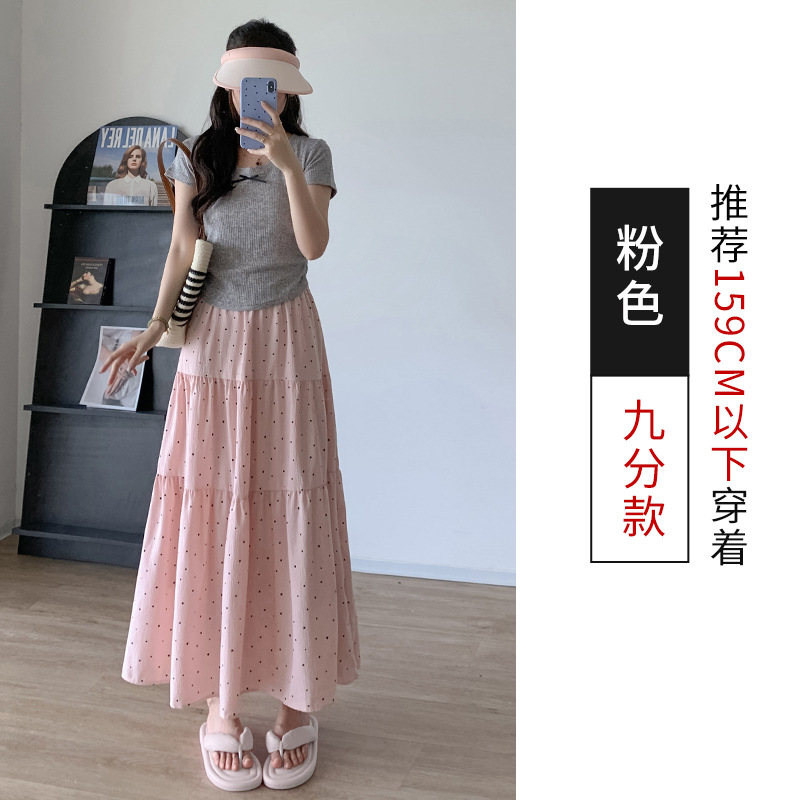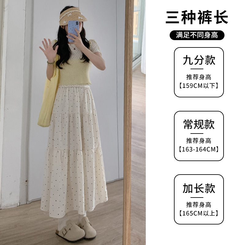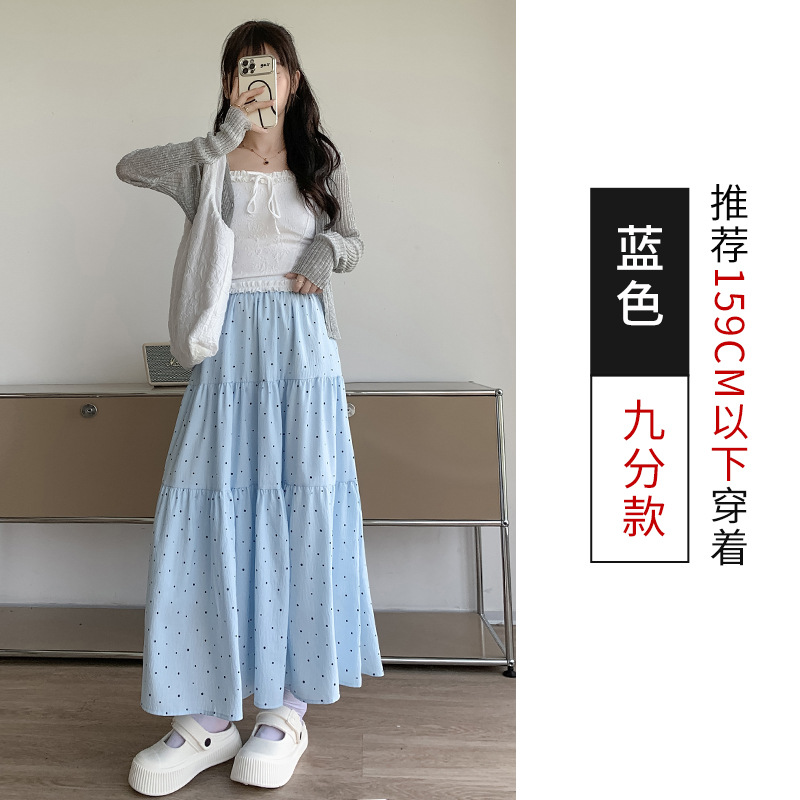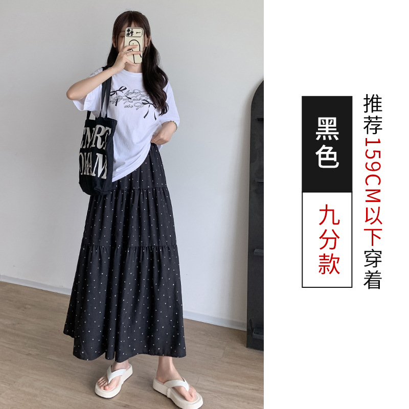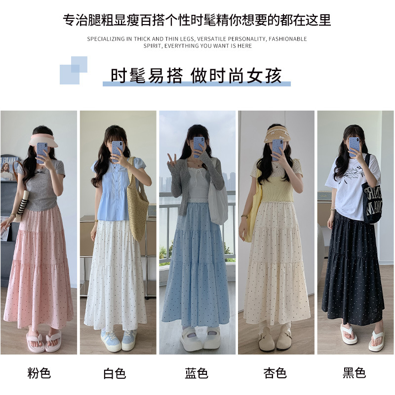 复古波点半身裙女夏高腰显瘦A字百褶中长裙芭蕾风拼接三层蛋糕裙