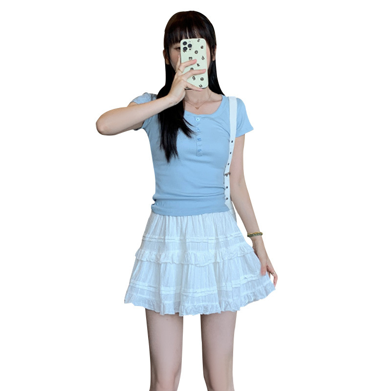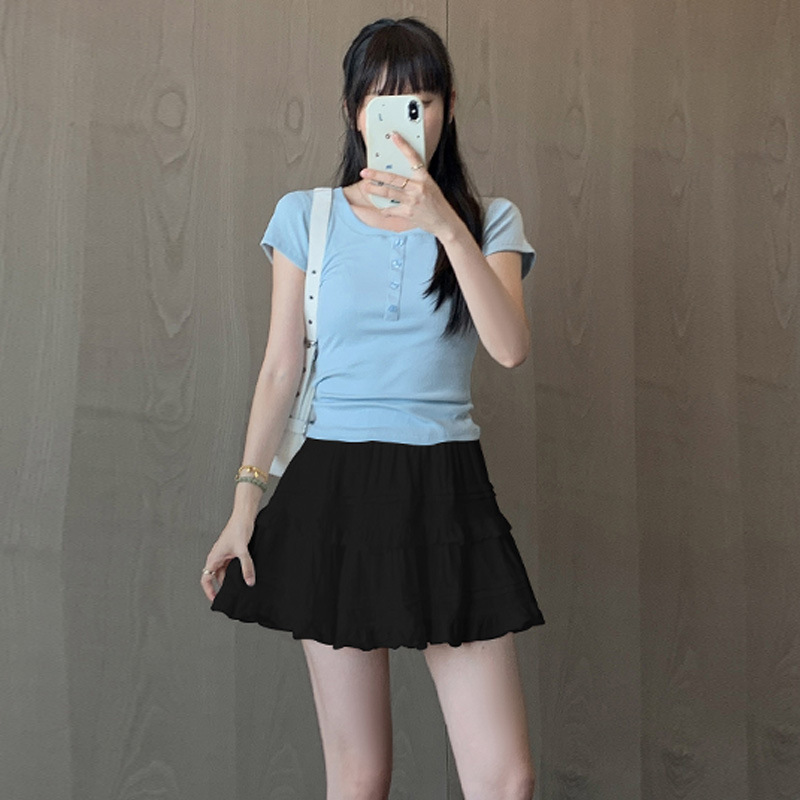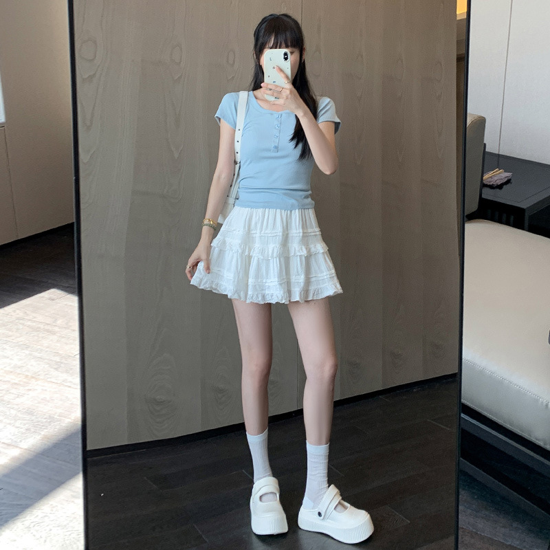 芭蕾风花边蛋糕短裙女夏季甜美半身裙显瘦高腰A字裙防走光短裙