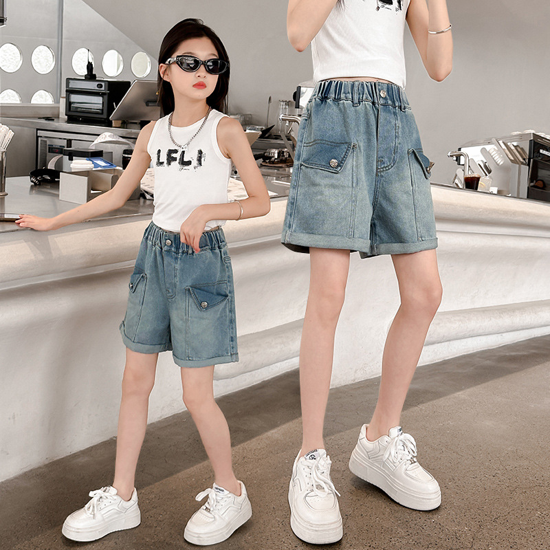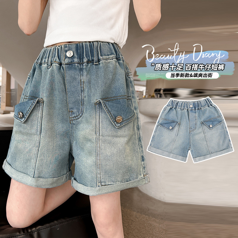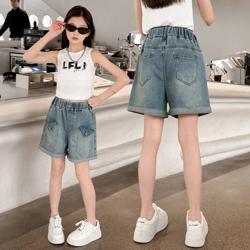 女童夏季短裤新款洋气网红时髦牛仔裤女大童薄款外穿炸街裤子